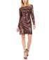 Get spotted in this seriously chic sheath dress from Vince Camuto| designed with sequins that sparkle in an animal print.| Approx. 37 long from center back neck to hem. Length is based on size 6 and varies 1/4 between sizes| Boat neckline; Sheath silhouette | Hidden zipper closure| Allover sequined animal print; ruched at side