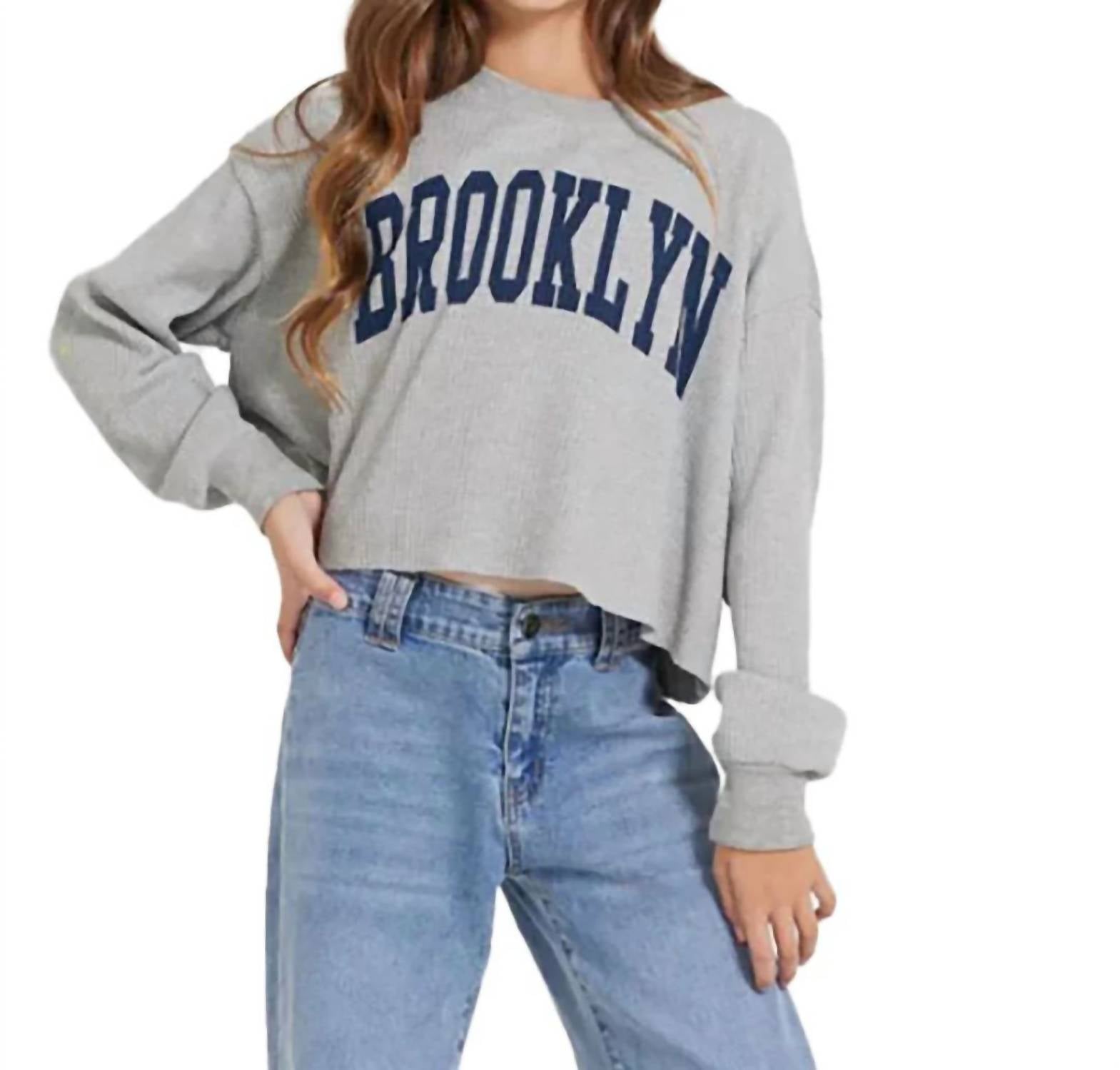 Step into cozy style with the Girl's Brooklyn Thermal Top by Vintage Havana. This grey, long sleeve sweater combines fashion and function with "Brooklyn" boldly displayed across the chest. Ideal for chilly days, its thermal composition ensures warmth and comfort. Care is easy with hand wash and line dry instructions.