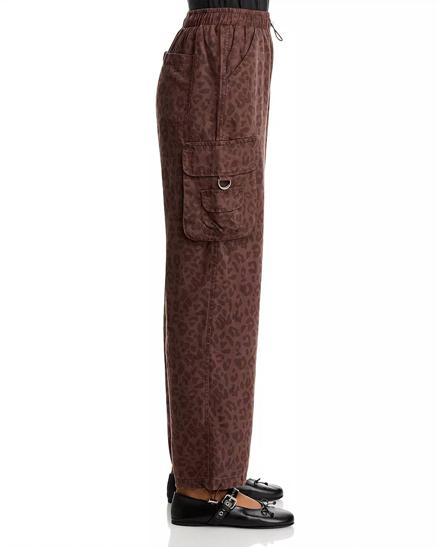 Crafted for style-forward women in a striking brown animal print. These imported straight-leg pants offer an elasticized pull-on style, complemented by a bungee drawcord at the waist and hem for added fit customization. Designed with functional slant hip pockets, patch back pockets, and cargo thigh pockets, these pants feature an 11.75" rise and a 29" inseam for ultimate comfort. Composition: 100% Lyocell. Machine wash.
