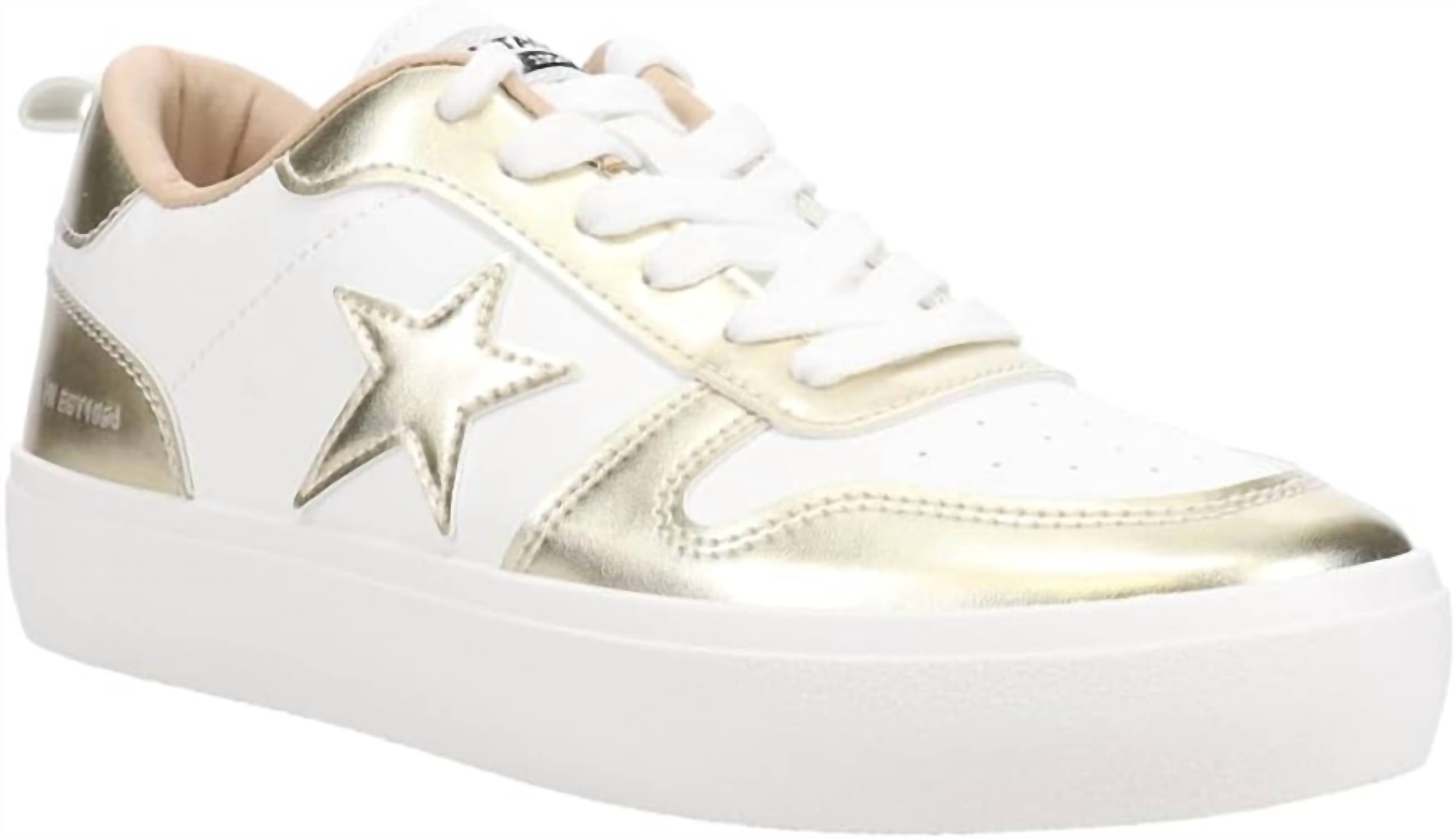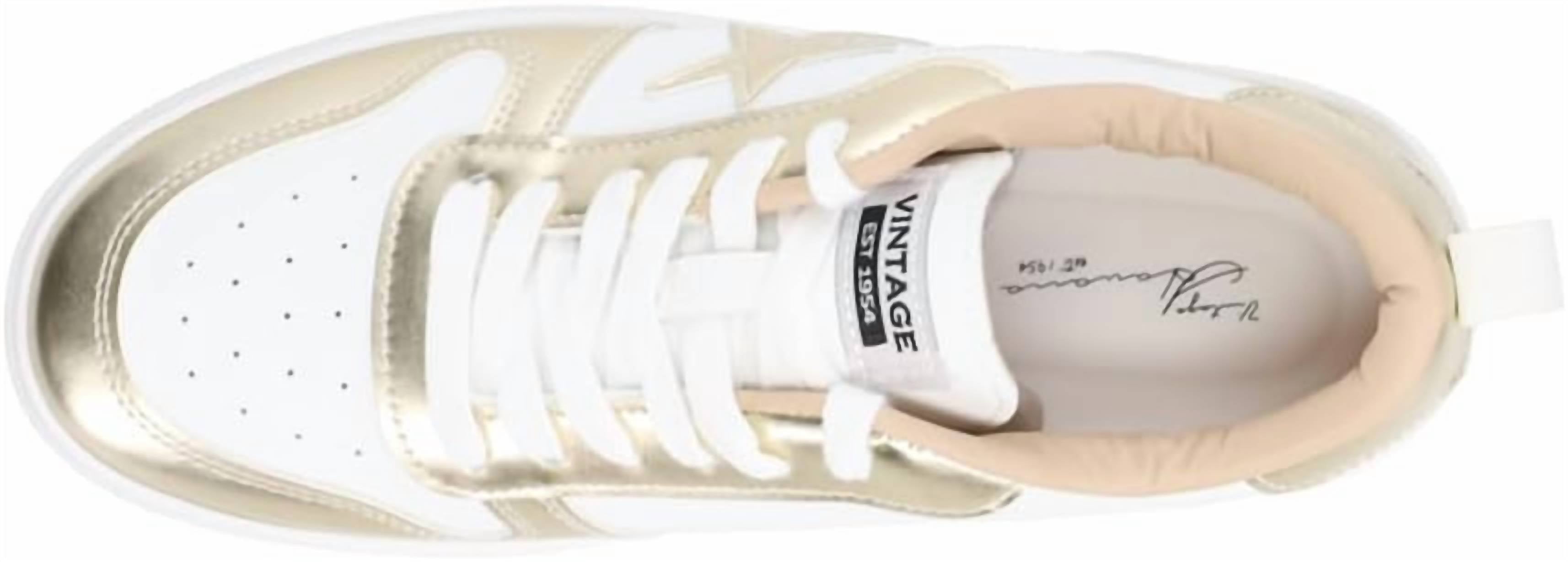 Cute, functional, and comfortable. These sneakers check all the boxes. Step out in style with the Women's Aura Lace Up Sneaker by Vintage Havana, a chic addition to your summer wardrobe. Crafted in a striking washed gold color, these sneakers feature a timeless round toe design. Material: Leather Upper/Rubber outsole. Perfect for a holiday party, these sneakers embody a preppy trend that suits any occasion.