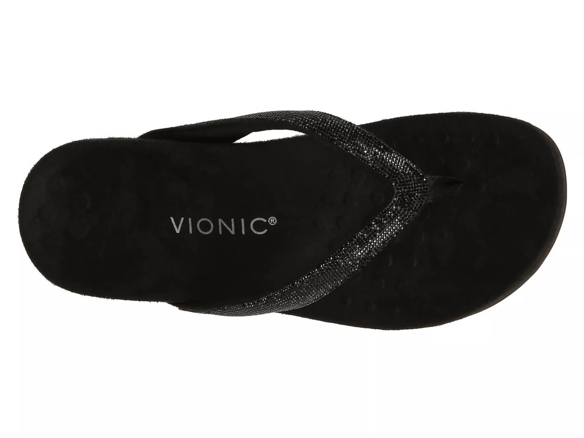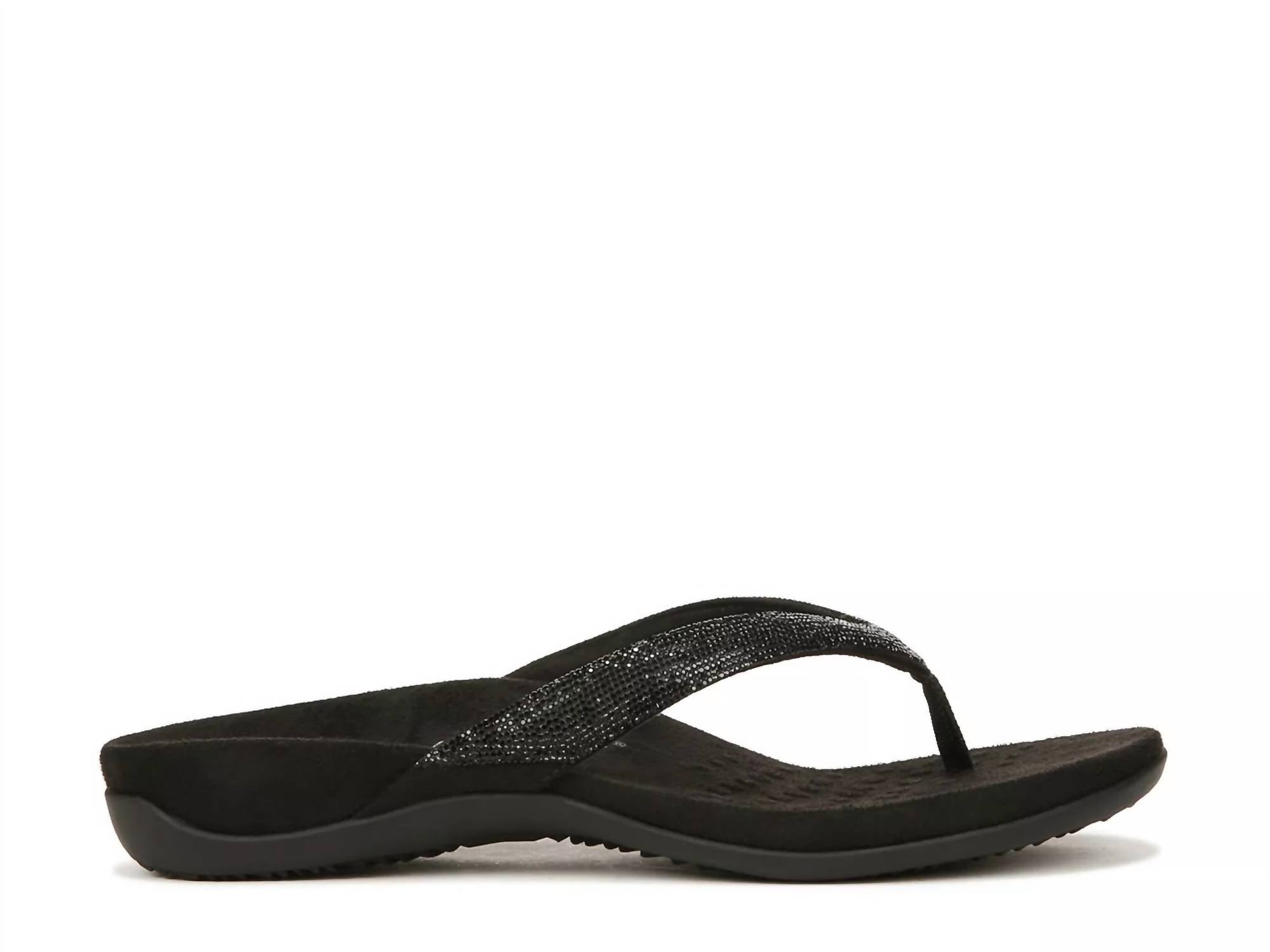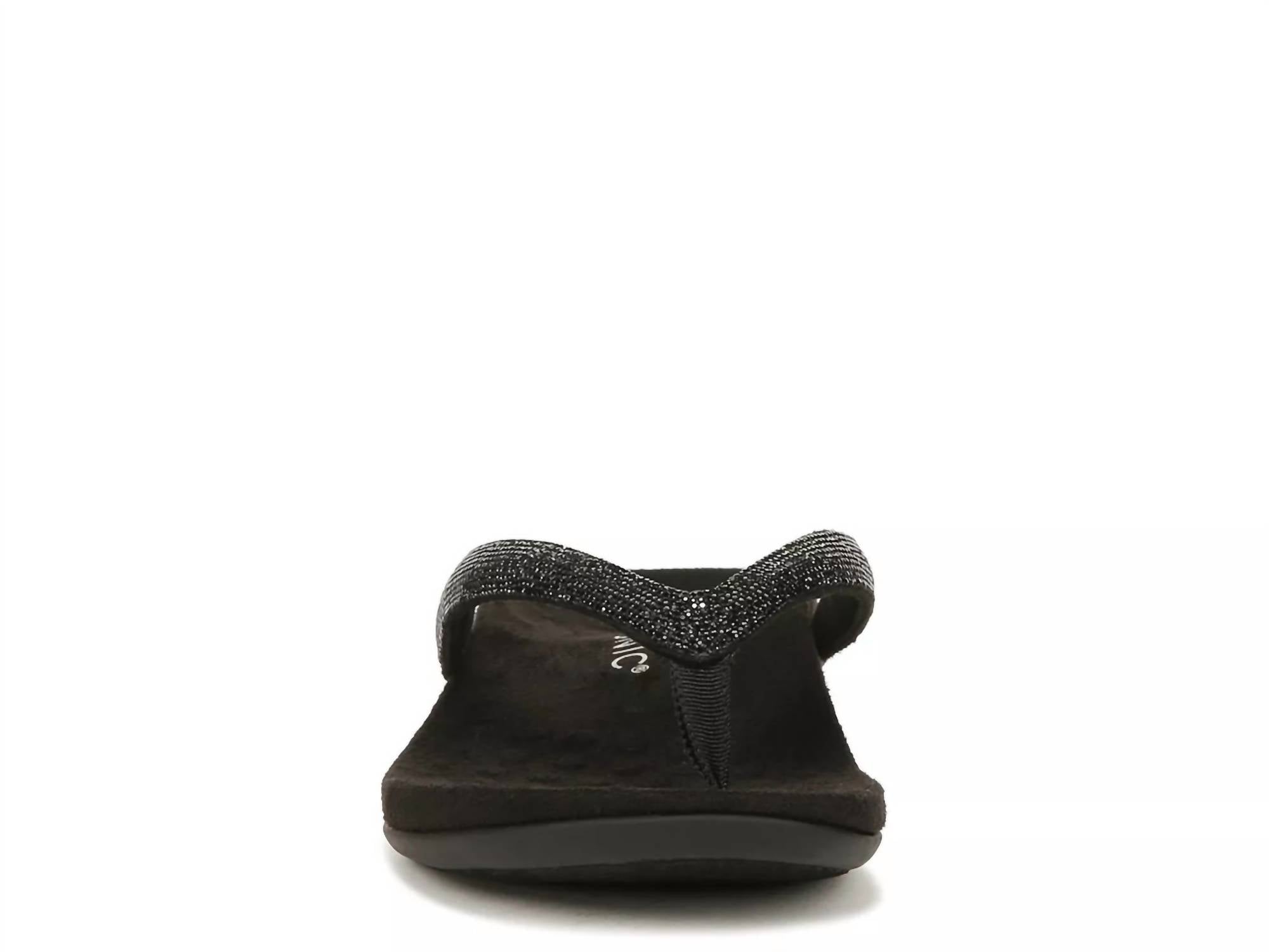 Flowy dresses, cropped pants, and even jumpsuits... this sandal works with them all! Step into casual elegance with the Women's Dillon Shine Sandal by VIONIC, featuring rhinestone straps for a touch of sparkle. These sandals are crafted with a fabric upper and a supportive, synthetic-wrapped EVA footbed designed by podiatrists for optimal arch support and stability. A slip-on design with a round open toe and a 0.75" platform, ensures comfort and style. Made with a durable rubber sole, these sandals are imported and ideal for those seeking both fashion and function.