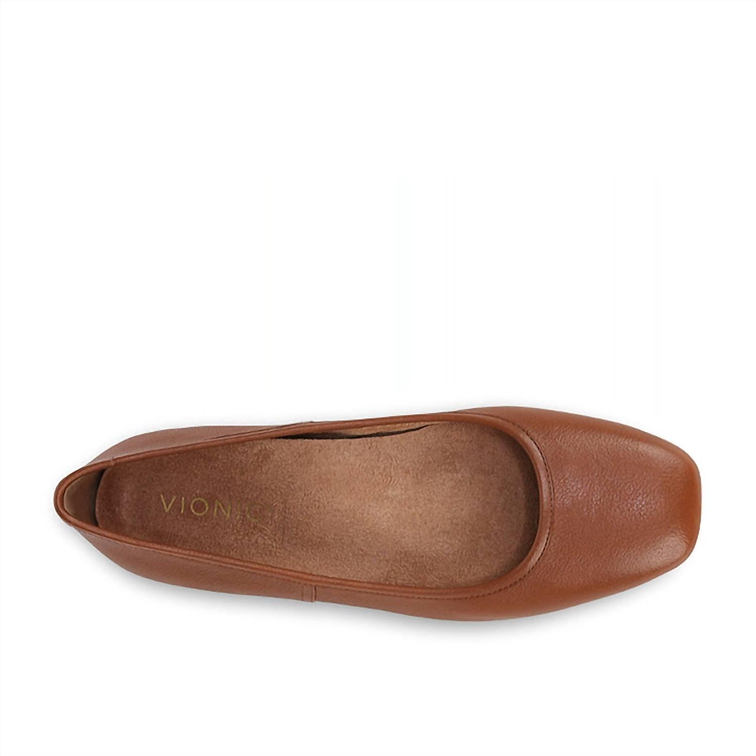 A preppy yet feminine take on the classic loafer. Discover the Orinda Flats by VIONIC, a sophisticated choice for evening events with a minimalist flair. Crafted with a leather upper, these tan flats feature a squared toe and flat heel for a sleek profile. The supportive removable microfiber-wrapped EVA footbed and wide fitting ensure custom comfort. Heel height is a subtle 0.375 inches, giving you the perfect blend of style and practicality for day-to-night wear.
