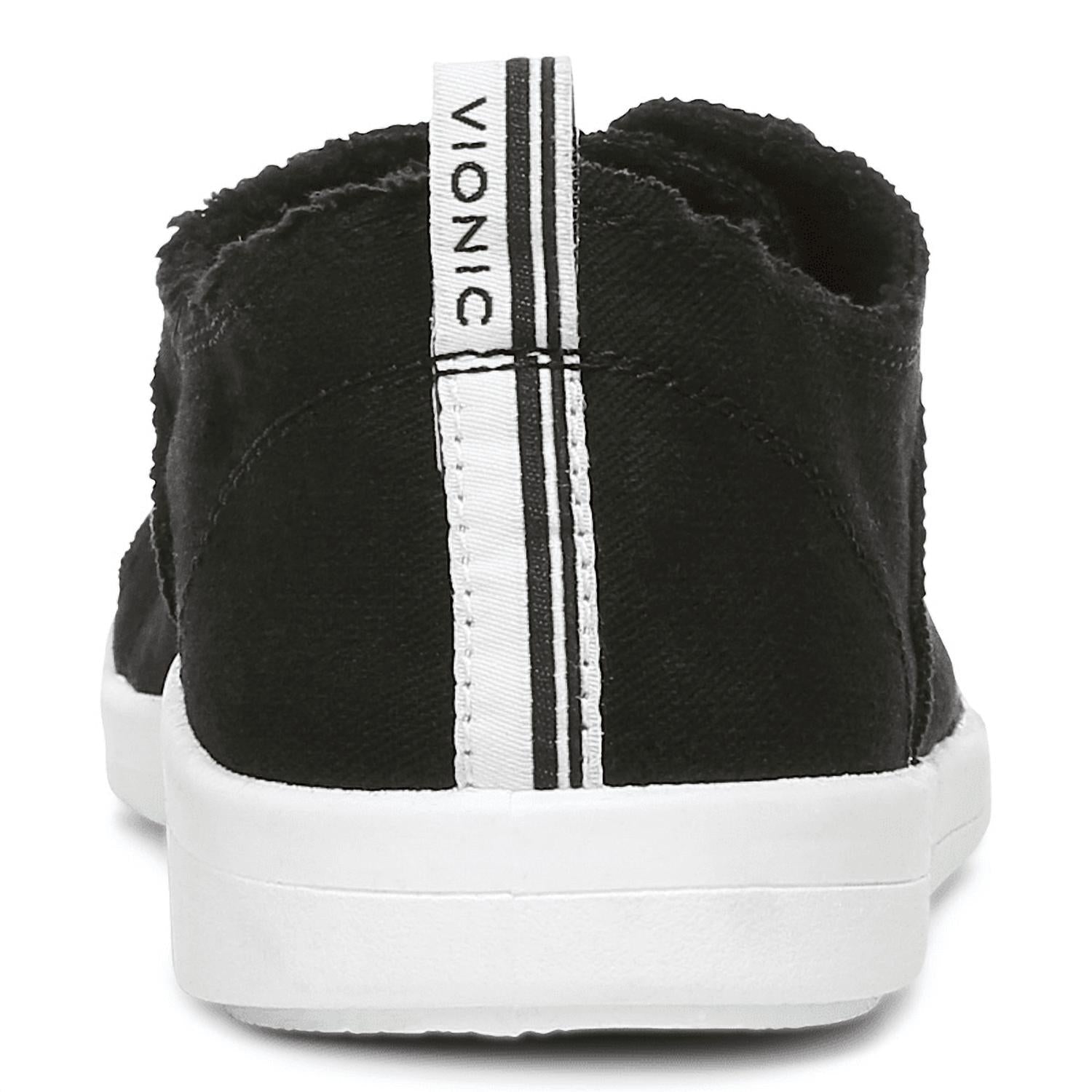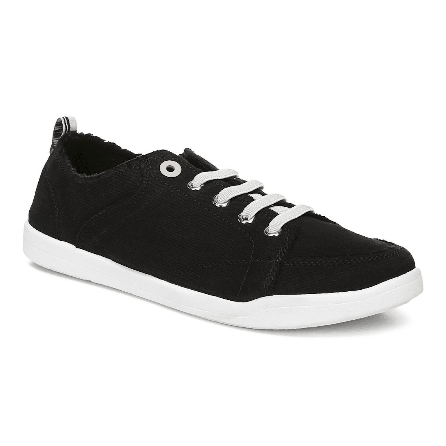 When fashion and function come together seamlessly. Step into summer with the Women's Pismo Canvas Shoes by VIONIC, offering the ideal blend of eco-conscious fashion and comfort. These sneakers feature an upper crafted from earth-friendly eco-certified cotton canvas or waffle knit, ensuring both style and sustainability. Concealed metal eyelets and stretch cotton laces provide an effortless fit, while the removable twill-covered EVA footbed enhances cushioning. With a TPR outsole and a vegan-certified design, these black sneakers with a round toe shape are perfect for adult women who prioritize both comfort and ethical choices.