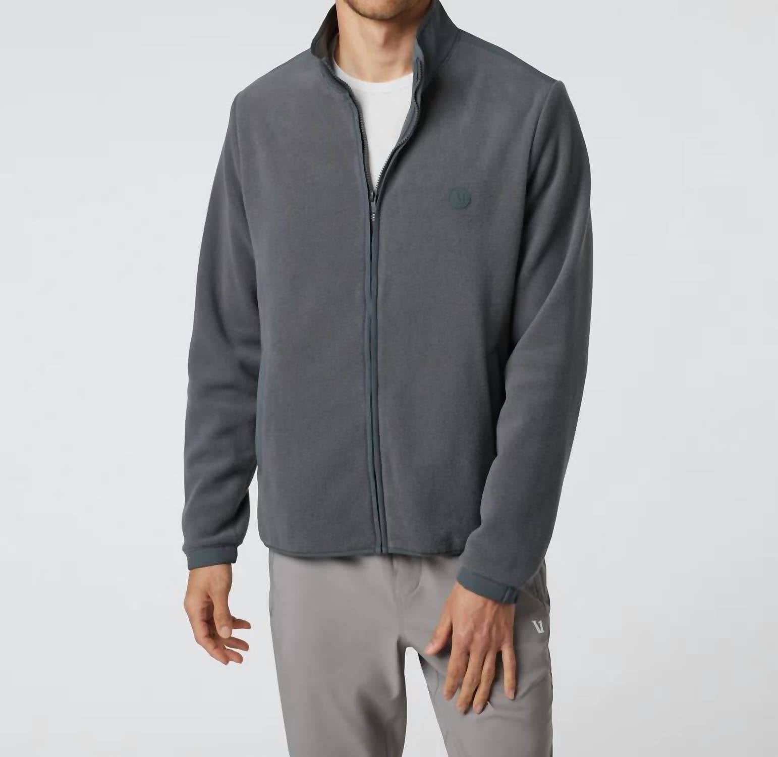 The Vuori Aspen Full Zip Jacket in Toast is a practical men's wardrobe addition, crafted from 100% recycled polyester Polartec® Wind Pro fleece for reliable water and wind resistance. This piece features a zip closure and a collared neckline, designed for both utility and style with long sleeves and convenient pockets. Care: Machine wash cold with like colors; tumble dry low.