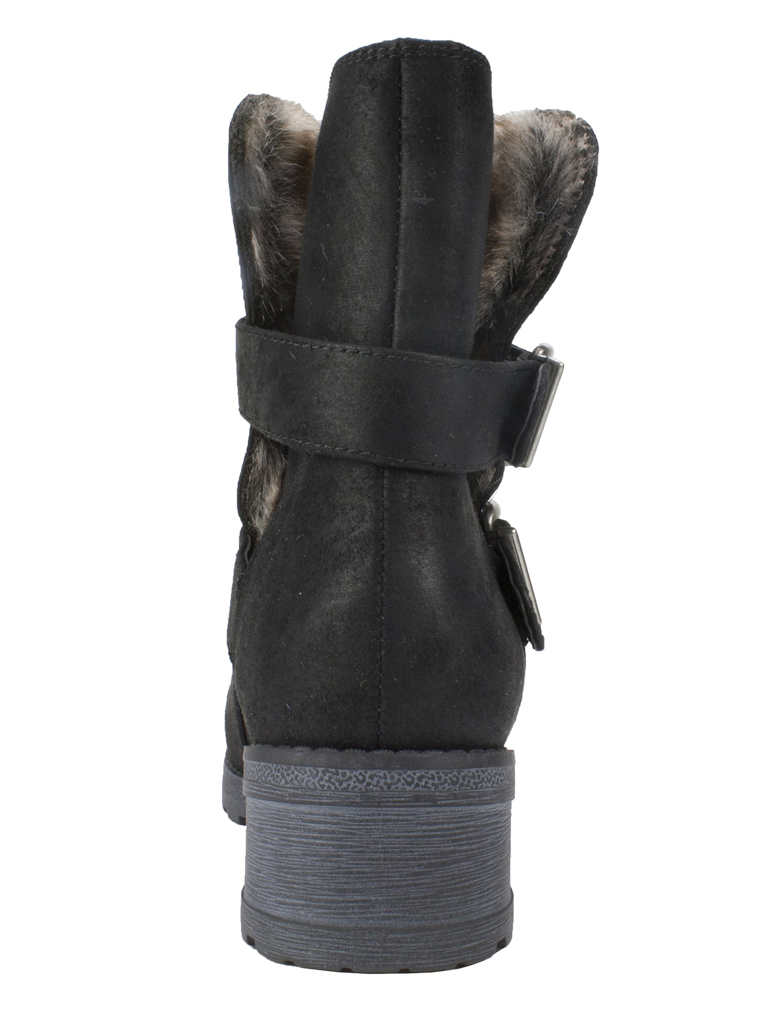 faux fur|ortholite foam cushioning|adjustable buckle