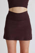 Introducing the WOLVEN Active Tennis Skirt in spicy mocha brown, a solid-colored mini activewear essential for summer fitness and athleisure trends. This women's skirt is made from high-performance nylon with a cozy vegan suede finish, featuring built-in shorts for convenience. It boasts a pull-on closure with side slits, crafted from 28.10 recycled bottles that offer ultra-softness, breathability, quick-drying, odor resistance, and four-way stretch. Care: Machine wash and tumble dry.