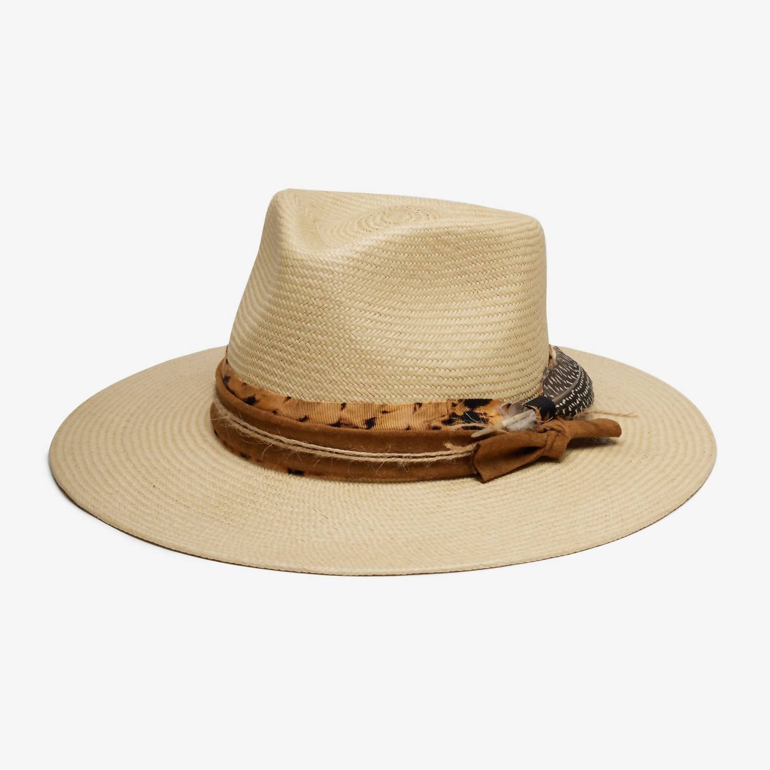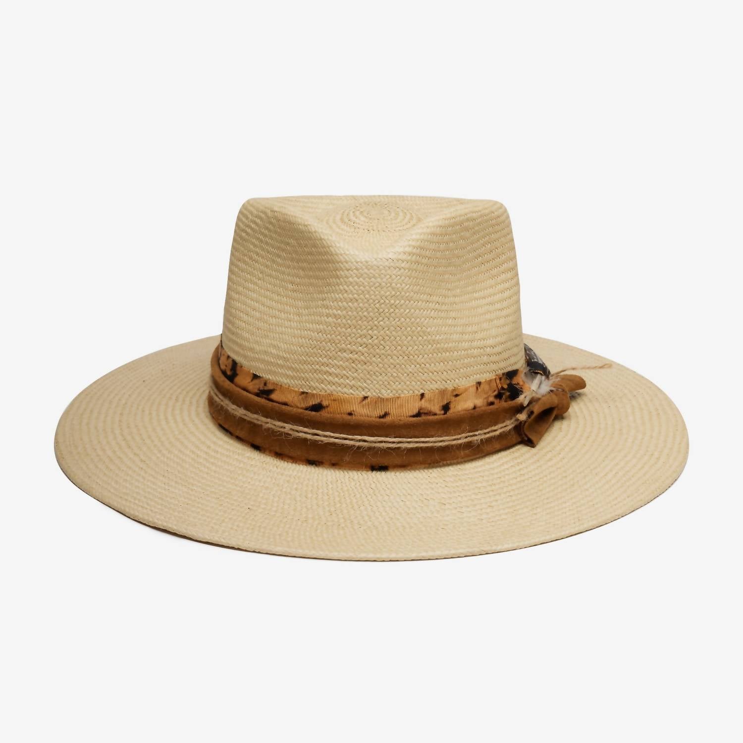 Turn heads in this stylish and chic hat. Not only is this accessory a must for keeping the sun out of your face, it will also be the perfect complement to any cute warm-weather outfit. Introducing the Women's Barra Hat by WYETH, a stylish accessory crafted from hand-woven genuine Ecuadorian straw. This natural-colored hat features an elegant grosgrain ribbon adorned with a distinct hand-painted distressed band and feather trim, adding a touch of sophistication. Originating from Ecuador, this timeless piece is perfect for elevating any ensemble. Embrace effortless style with this unique and thoughtfully designed hat.