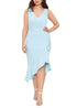 Be the best-dressed guest in XSCAPE's ruffled plus size midi dress.| Approx. 44 long from center back neck to hem| Fitted through the chest and waist; flared and flowing skirt| Scuba crepe; Stretchy and supportive| V-neck; Fit & flare silhouette| Hidden back zipper | Ruffled at side; asymmetrical hem