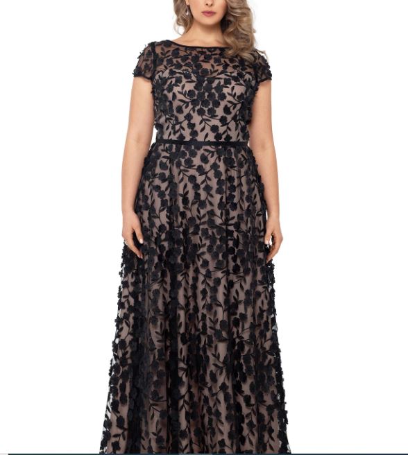 Xscape Women's Plus 3D Flower Gown Black Nude Size 18W