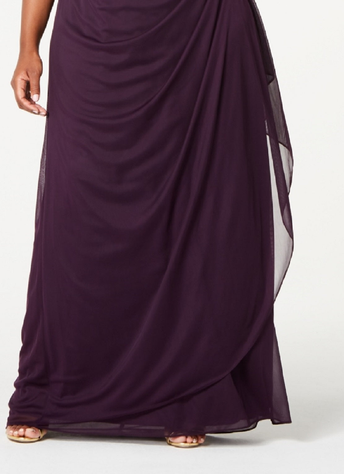 Straight neckline|Concealed back zipper closure|Floor length|Ruched at waist|Imported|Lace cap sleeves|Connect with a stylist & get free expert advice online or in stores for your wardrobe