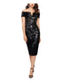 Xscape Women's Sequined Off the Shoulder MIDI Dress Black Silver Size 6 Petite