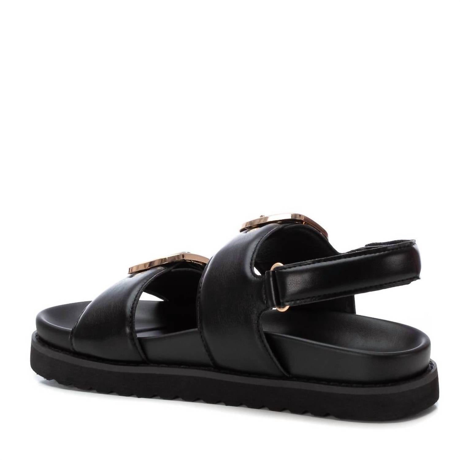 Classicly cute and all-day-wearable. We love this sandal. Introducing the Women's Buckle Sandals by Xti, a chic and versatile addition to any wardrobe. These black sandals feature an open toe design, perfect for keeping cool and stylish in any setting, from work to social events. Designed for women, they effortlessly combine comfort and fashion, ensuring you look and feel your best all day long. Elevate your ensemble with these must-have sandals, ideal for any occasion.