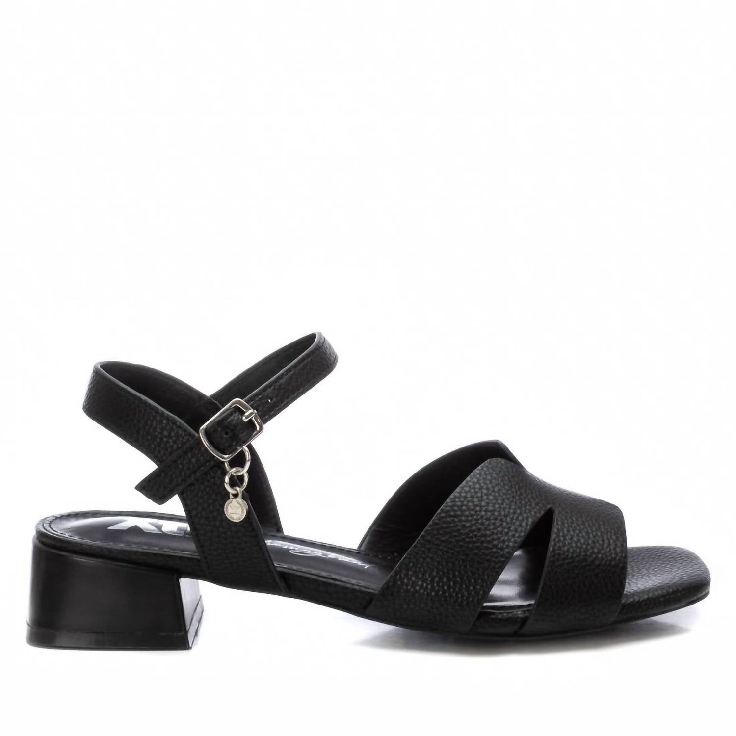 Flowy dresses, cropped pants, and even jumpsuits... this sandal works with them all! Elevate your style with the Women's Heeled Sandals by Xti, designed for both fashion and comfort. Crafted from faux leather with a metallic finish, these sandals feature a squared toe and a stylish black buckle closure. The comfortable block heel stands at 1.18 inches (3 cm) and is equipped with a non-slip rubber sole for stability. Ideal for casual occasions, these sandals ensure a chic look day or night.