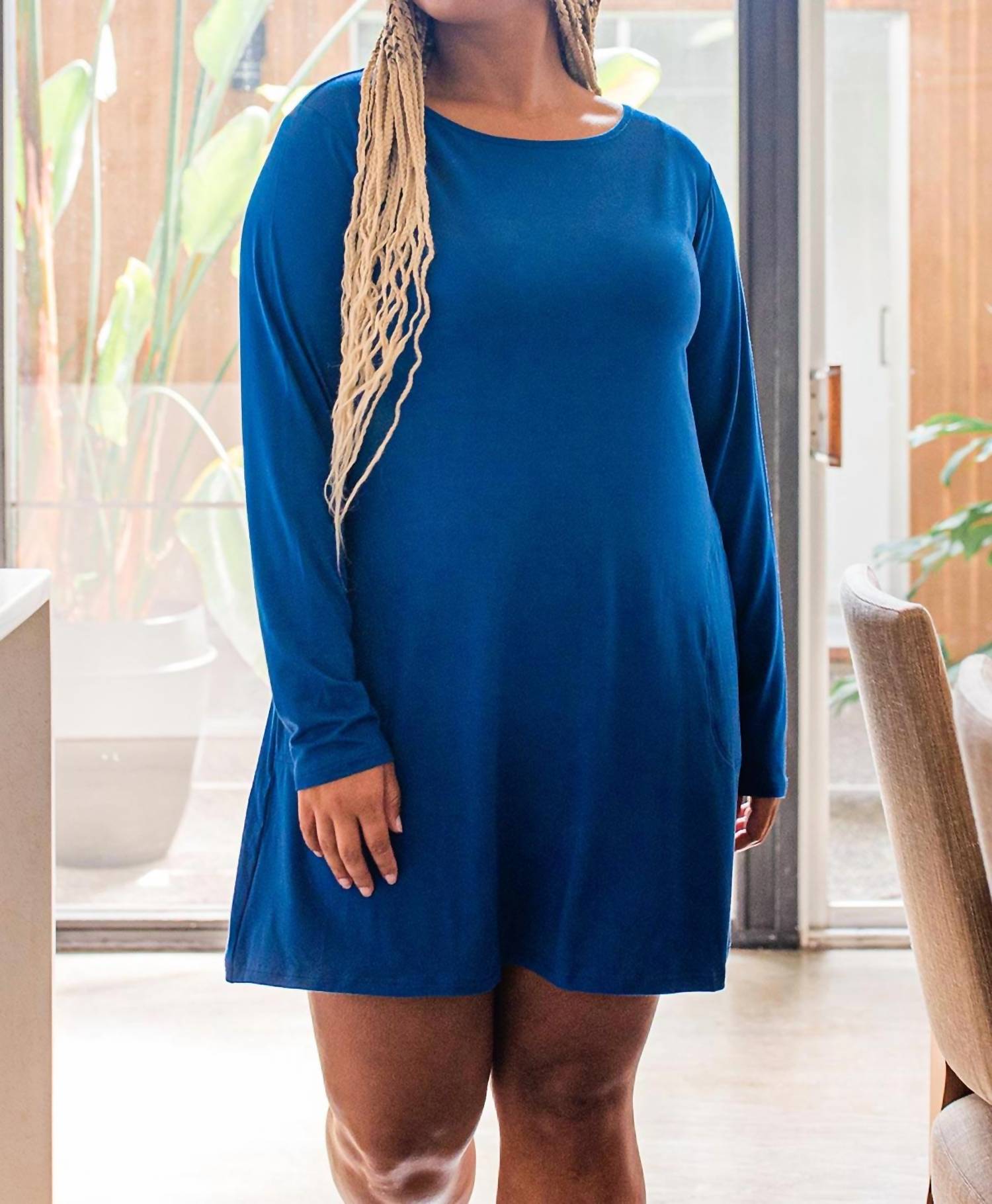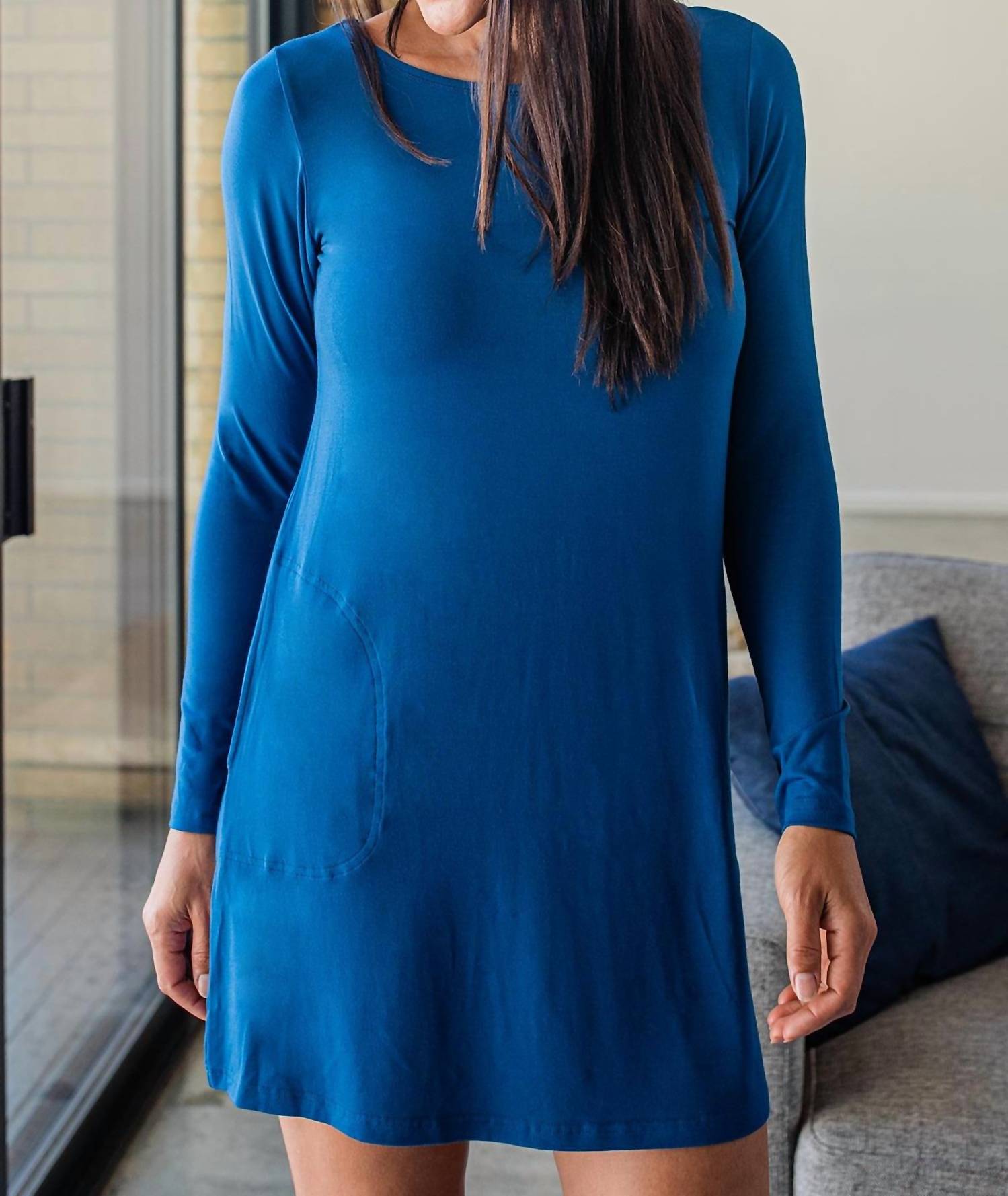 The kind of easy and flattering dress you'll be reaching for all season long. Introducing the Mia A-line Bamboo Mini Dress by Yala in a rich Lapis hue, perfect for the minimalist yet sophisticated wardrobe. This elegant dress features full-length sleeves and is crafted from a luxurious blend of 95% viscose from USDA Certified Organic Bamboo and 5% spandex, offering softness, breathability, and sun protection. Designed with a scoop neck and practical side pockets, it falls above the knee and is sewn where sourced on small sewing floors. Closure: Pull on. Care: Machine wash and tumble dry. Ideal for spring dinner parties or a chic New Year's Eve gathering.