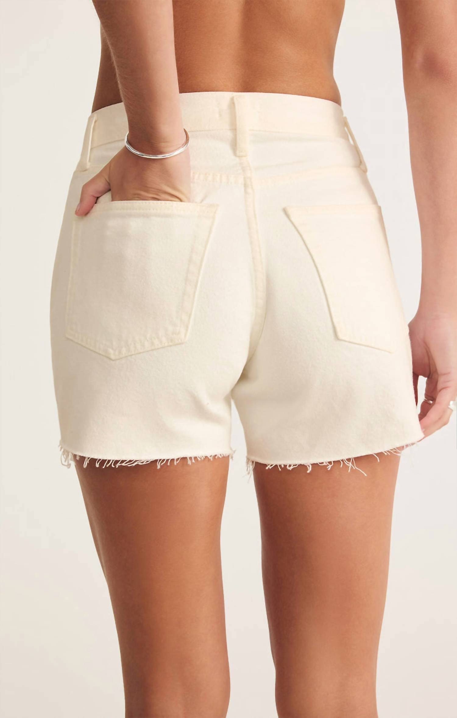 High-waist is here to stay and we especially love this style short. Discover the Z Supply Everyday High Rise Denim Short, a staple for your summer wardrobe in a versatile off-white hue. Featuring a regular fit and crafted from 100% cotton, these shorts are designed with a non-stretch denim for a worn-in softness you'll love. Closure is secured with a button and zip fly, and the shorts include five practical pockets. Care is simple with machine wash cold and tumble dry low instructions, perfect for effortless summer style. Inseam measures 4.5 inches.