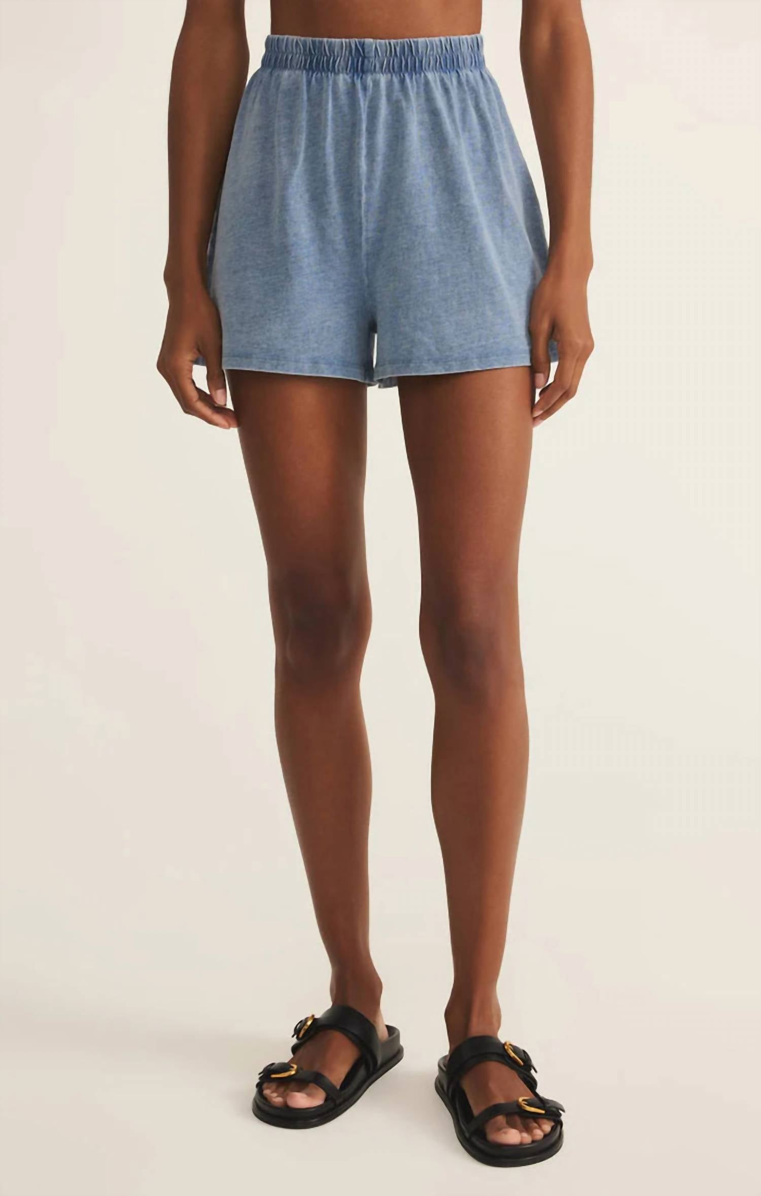 Experience unparalleled comfort with the Scout Jersey Short by Z Supply in Medium Indigo. These high-rise shorts are crafted from 100% cotton jersey fabric, offering a mineral-wash finish and an elastic waistband for a relaxed fit. They feature a pull-on closure, making them perfect for vacation wear. Care instructions include machine wash cold on a gentle cycle and hang to dry. Available in sizes XS to XL, with a short inseam starting at 2 3/8".