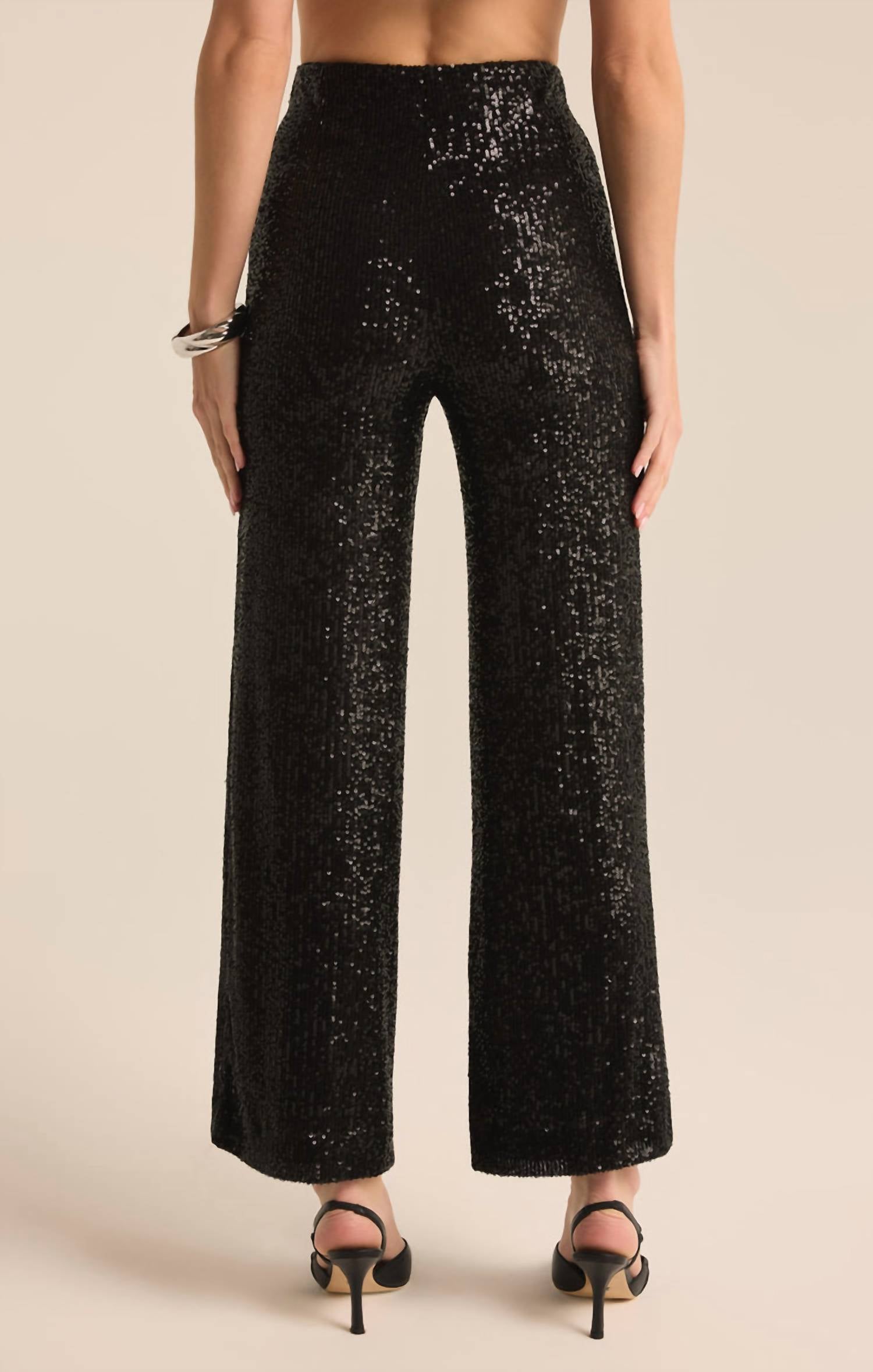 Introducing the Skylar Sequin Cropped Pant by Z Supply, a dazzling addition to your holiday wardrobe. These wide-leg pants feature a high-rise, cropped length and an elastic waistband for a flattering regular fit. Made from a Stretch Sequin blend of 92% Polyester and 8% Spandex, they promise comfort and style with every wear. Care: Machine wash cold, delicate wash, hang to dry. Inseam: 27.5 inches. Model is 5'7" wearing size S (37" bust, 30" waist, 42" hips).