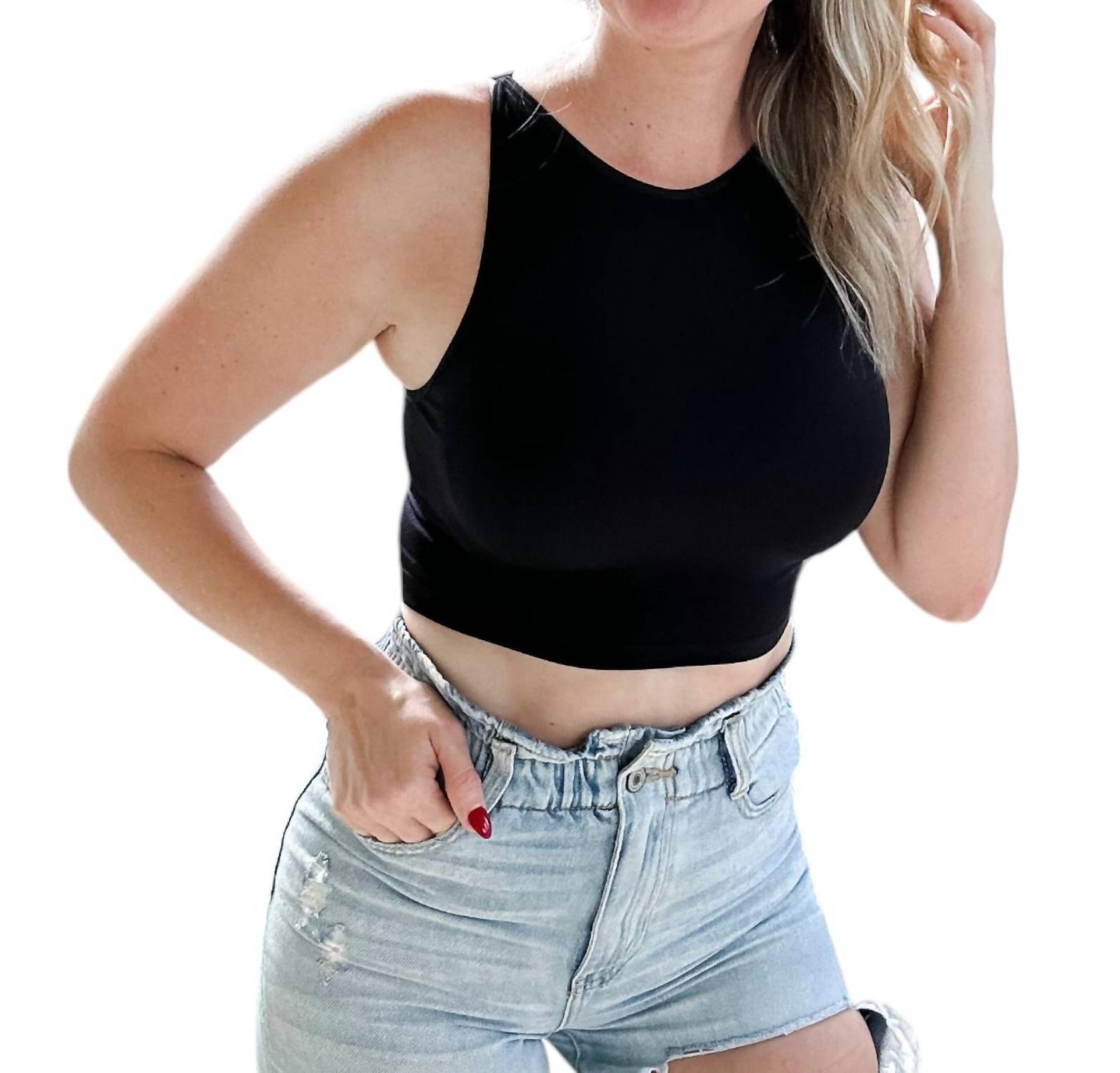 The most comfortable and stylish bra that you'll reach for daily.Sleeveless. Pull-on style. Cropped. Scoop neckline. Stretchable and durable fabric. 90% Nylon, 10% Spandex.