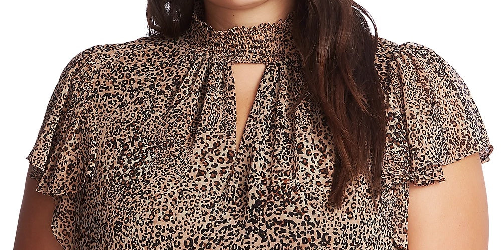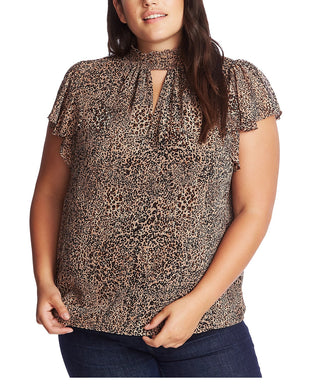 1.STATE Women's Animal Print Short Sleeve Halter Top Black Size 1X