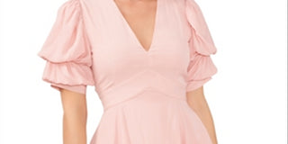 1.STATE Women's Bubble Sleeve V Neck Dress Pink