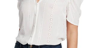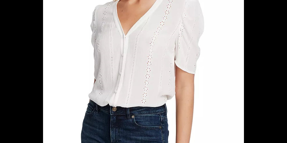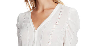 1.STATE Women's Eyelet Puff-Sleeve Crinkle Top White