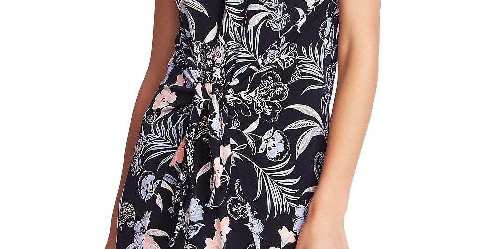 1.STATE Women's Paisley Fields Halter Neck Tie Front Dress Blue Size Large