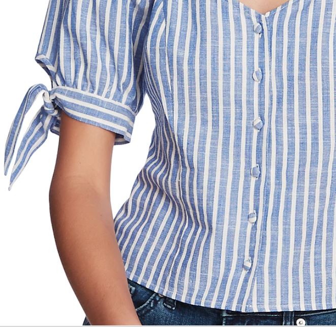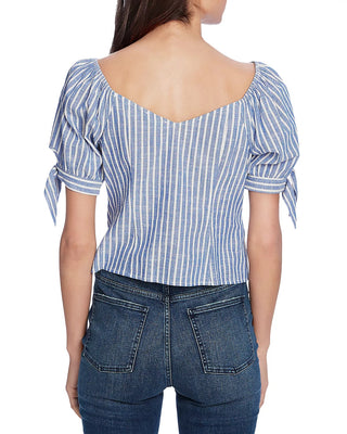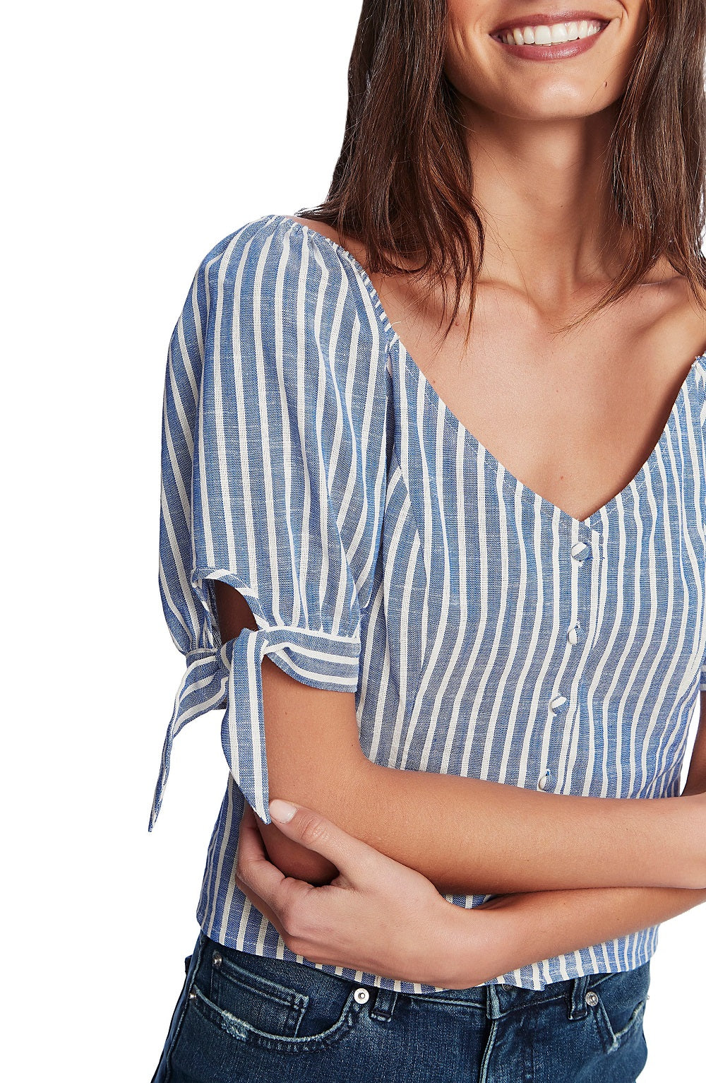 1.STATE Women's Riviera Stripe Tie Cuff Top Blue