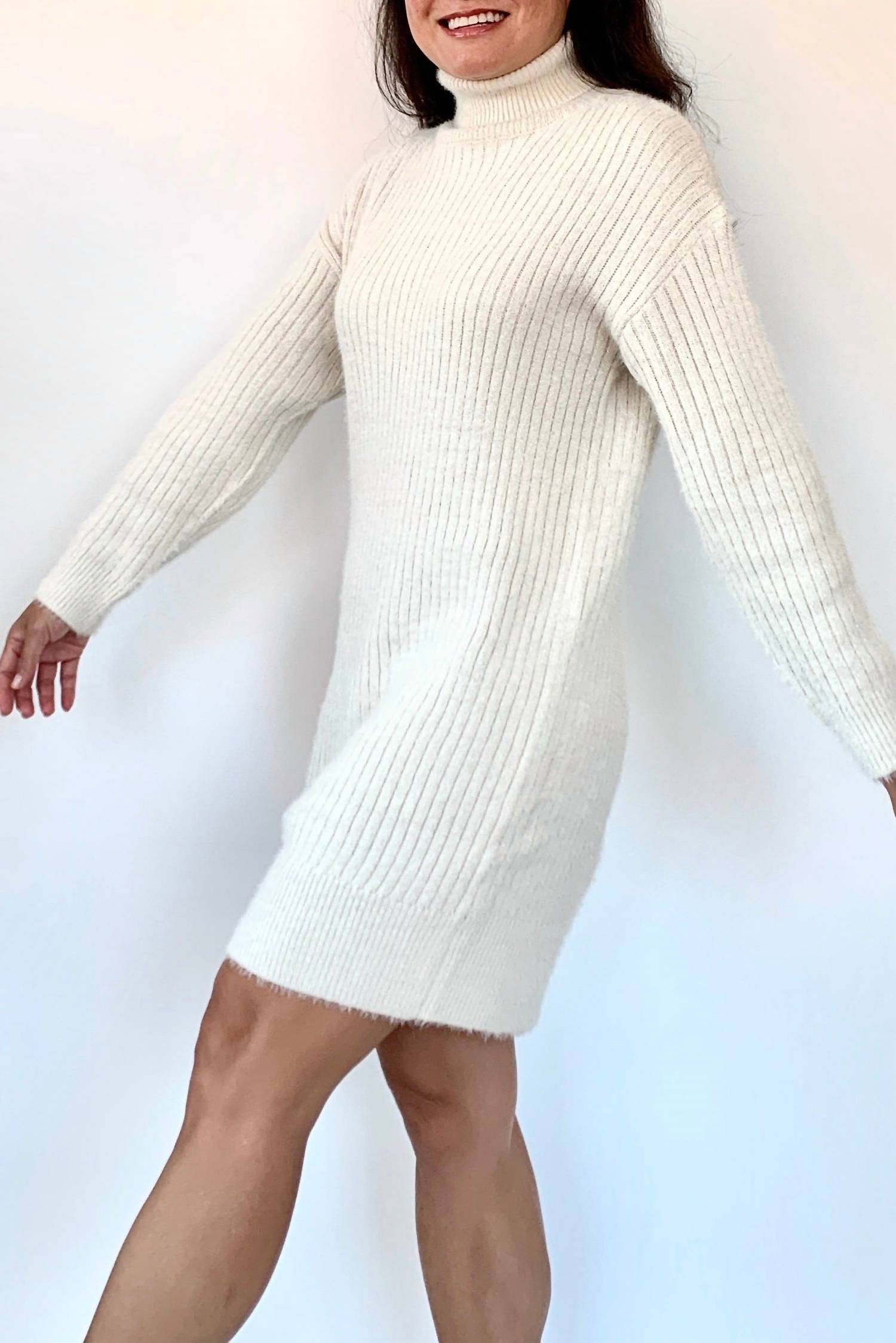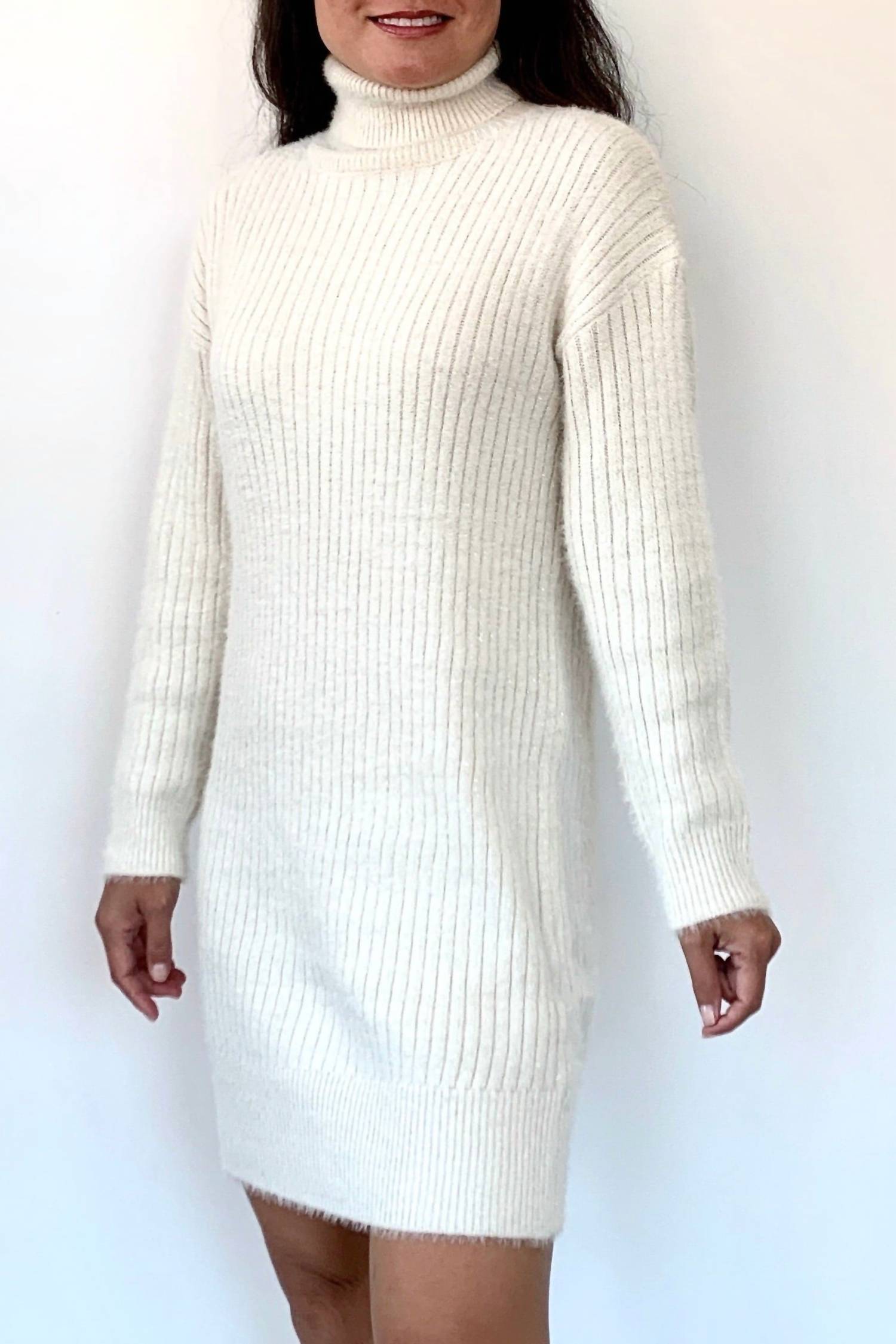 Introducing the Anita Sweater Dress by 124 Voltaire, a chic and cozy staple for every fall wardrobe in classic white. This textured mini dress features a long sleeve design complemented by a stylish turtleneck that is comfortable and non-restrictive. Crafted from a blend of 50% Polyamide and 50% Polyester, its shift silhouette offers effortless style that pairs well with ankle or over-the-knee boots for a sophisticated edge. Closure: Pull on. Ideal for travel, this minimalist piece fits true to size.