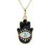18K Gold Plated 0.19ctw Neon Apatite, Zircon & Enamel Hamsa Pendant w/ Chain
