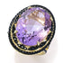 Experience the elegance of the VW-Gems collection with this exquisite ring, available in your choice of a stunning Brazilian amethyst or a captivating prasiolite as the centerpiece. Each stone is beautifully complemented by a shimmering array of 122 black spinel gemstones, renowned for their natural, untreated beauty that rivals the sparkle of black diamonds.