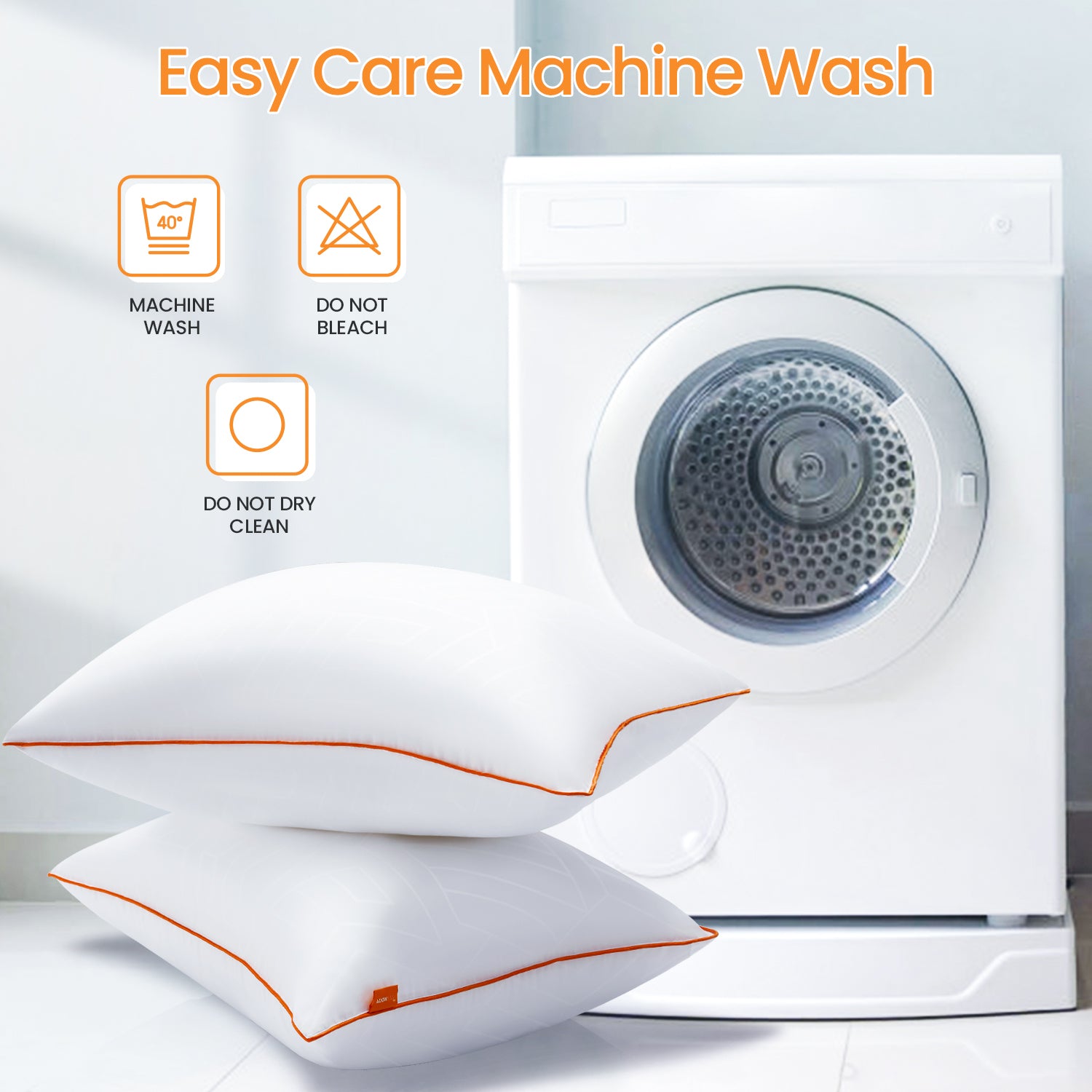 Encased in soft, breathable polyester fabric, these pillows remain cool and comfortable throughout the night. Vacuum-sealed for easy shipping, they expand to full size within 24 hours, and are machine washable for effortless maintenance, keeping them fluffy and fresh night after night.