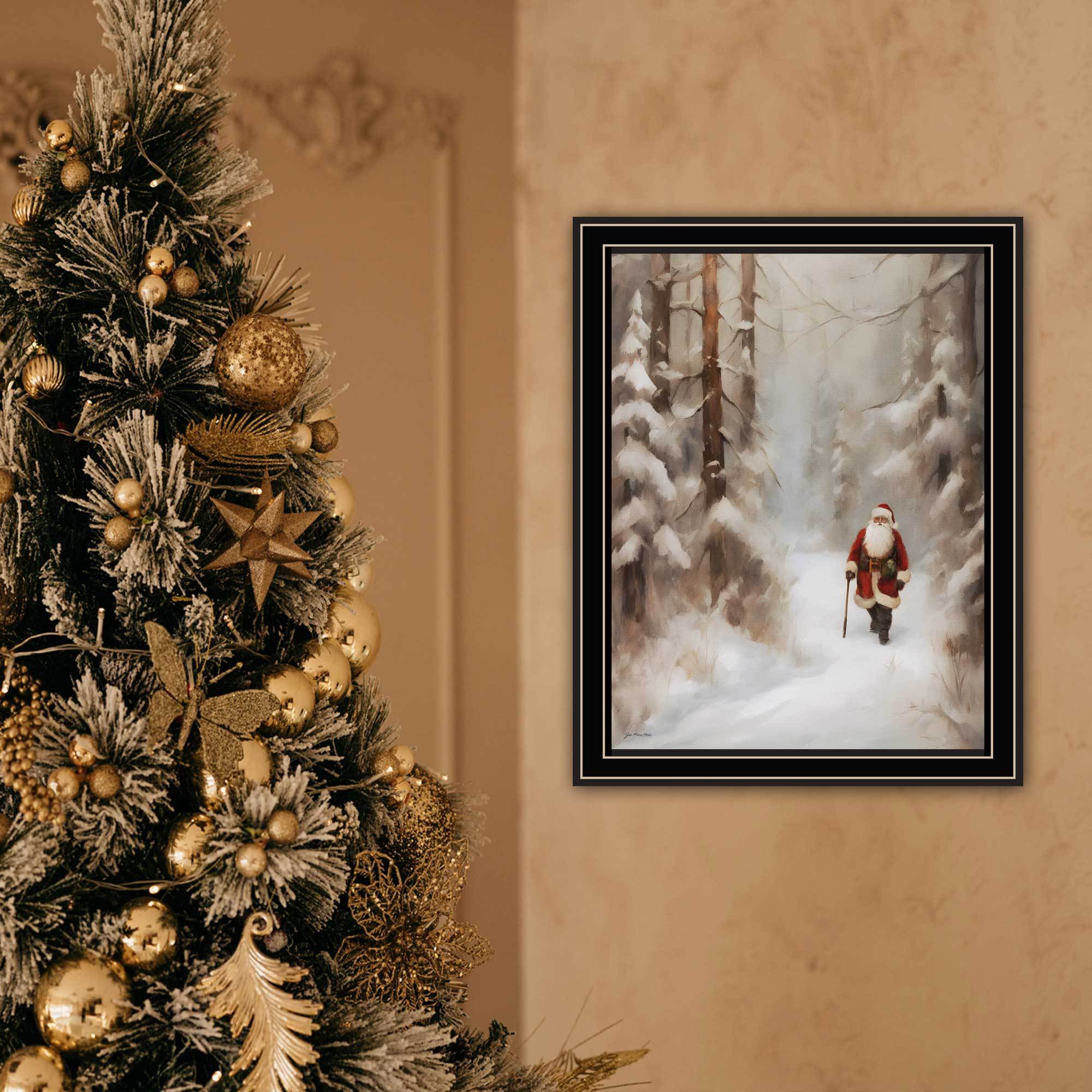 Capture the warmth and wonder of the holiday season with Trendy Decor 4U’s “Santa’s Winter Stroll” Black Framed Wall Art by Jo Moulton. This charming Christmas-themed print features a nostalgic winter scene of Santa taking a peaceful stroll, bringing a touch of classic holiday cheer to your living room, bedroom, or entryway.