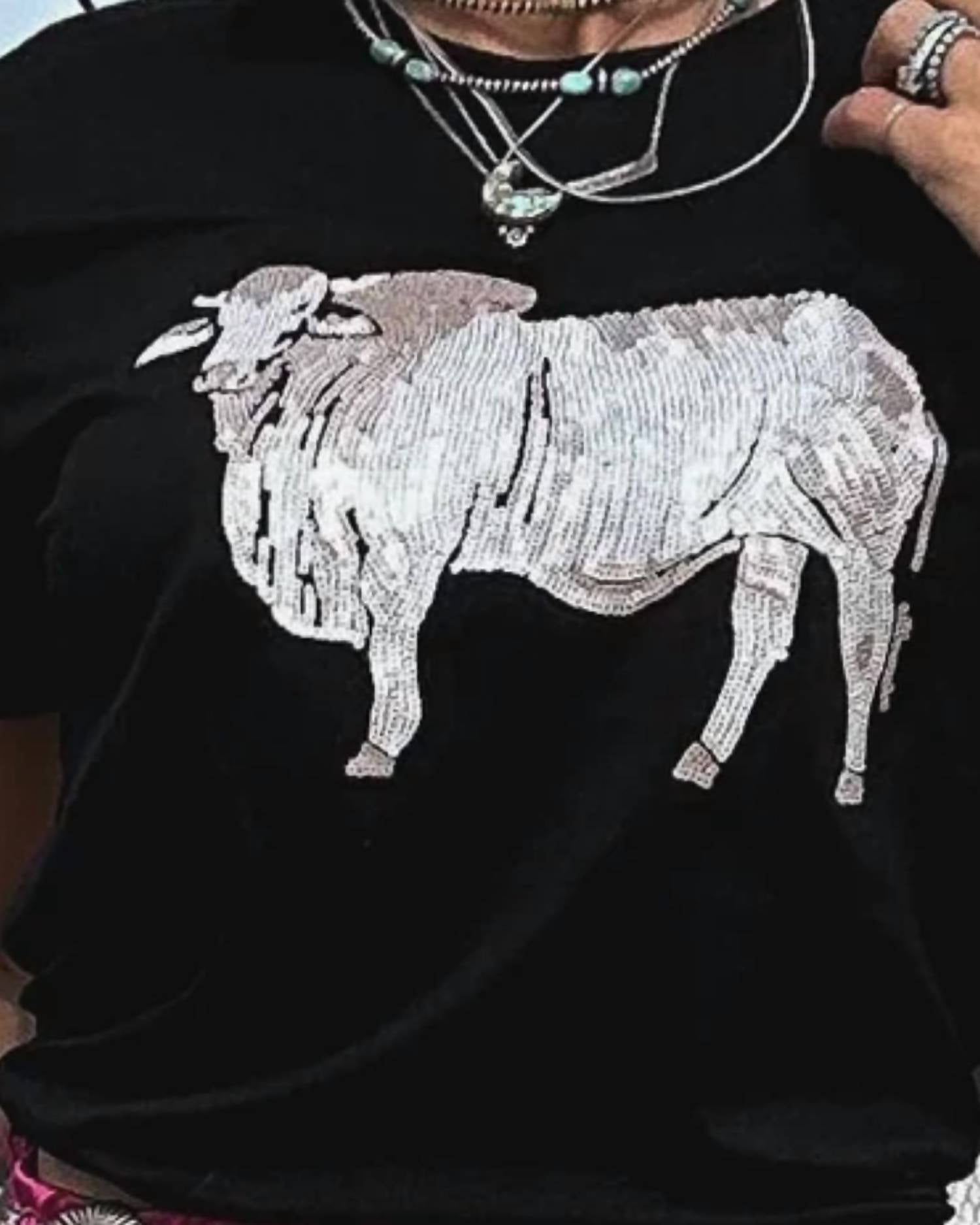 Meet the Booyah Brahman Short Sleeve Tee by 2FlyCo, where bold style and sparkle converge for an iconic look. Crafted for comfort, this black patterned tee features short sleeves and a charming crewneck design. Closure is a simple pull-on style. For care, hand wash and line dry to keep its shine intact. Perfect for twinning moments with your mini-me, sold separately.