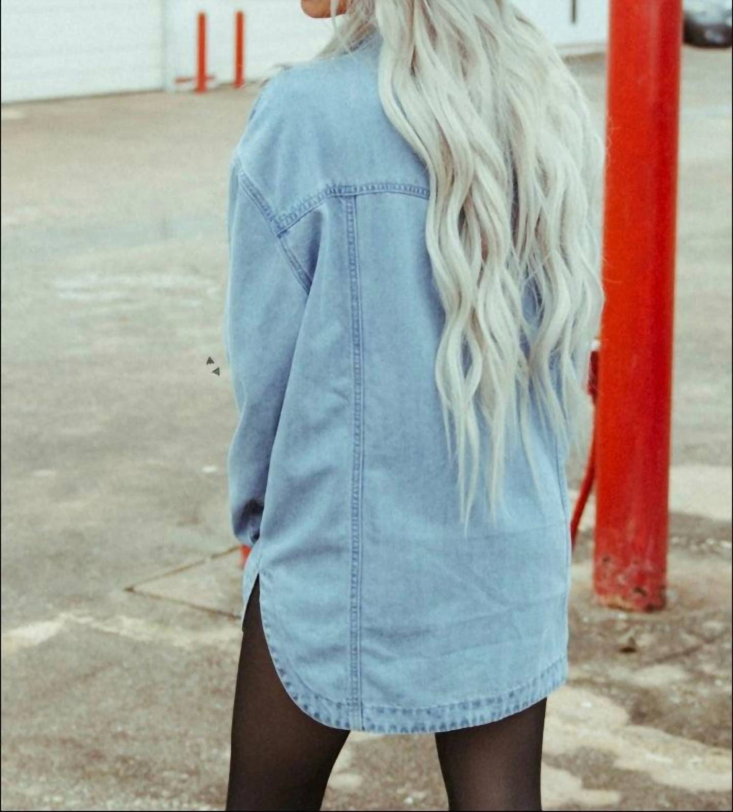 This button down shirt is comfortable yet polished. Introducing the Homesteader Denim Button Up by 2FlyCo, a versatile piece that effortlessly blends a laid-back and chic vibe. This blue button-down shirt features long sleeves and comes in a solid pattern for a timeless spring look. Made from 100% cotton, it offers a relaxed, oversized fit or can be sized down for a more tailored style. Closure: Button closure. Care: Machine wash and tumble dry. Ideal for a vacation or Easter occasion.