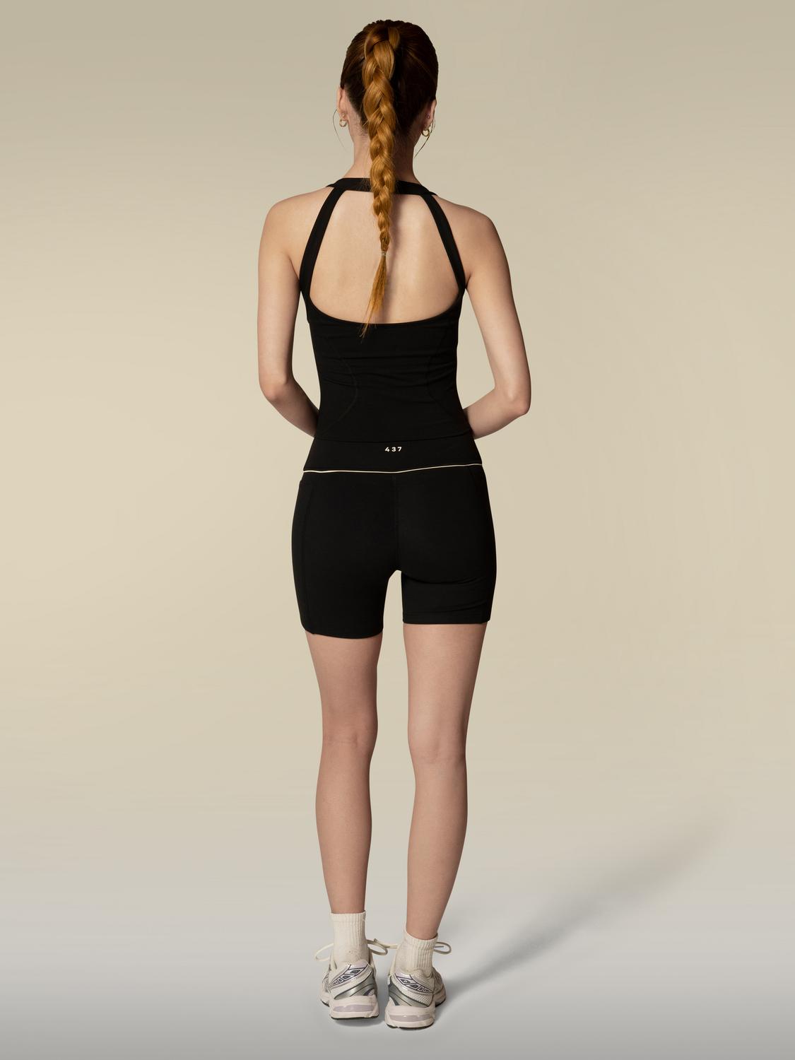 Athletic shorts that work for the gym or running errands! Experience unrivaled comfort with the Studio Short by 437 in chic Black-crème, perfect for your active lifestyle. Designed for women, this athleisure essential features a solid pattern and a convenient pull-on closure, complete with pockets for functionality. Made from 82% recycled polyester and 18% spandex, these shorts deliver both sustainability and stretch. Easy to care for, just machine wash cold and lay flat to dry for best results. Model is wearing a size XS (Bust 34", Waist 23.5”, Hips 35", Height 5'8").