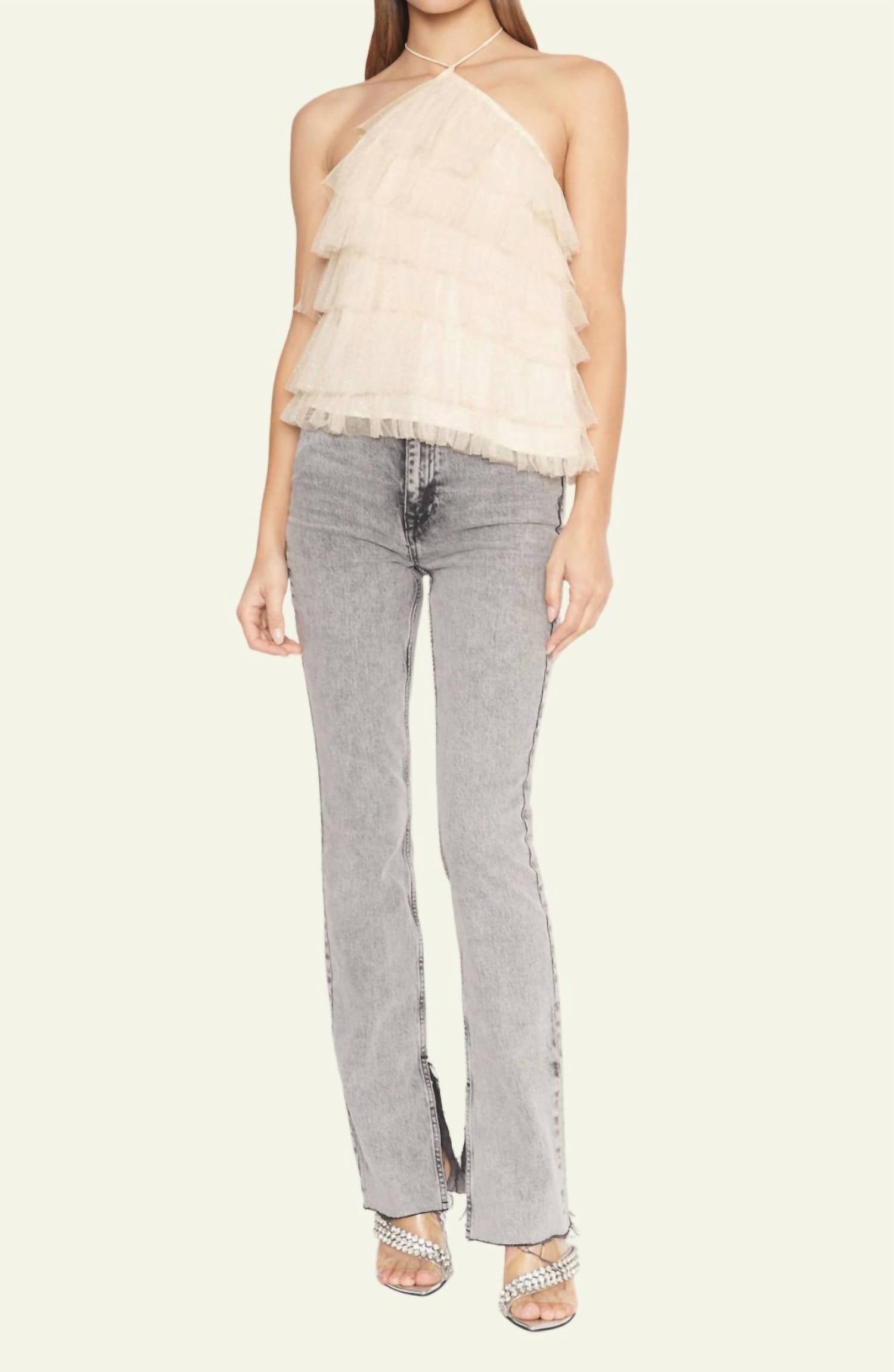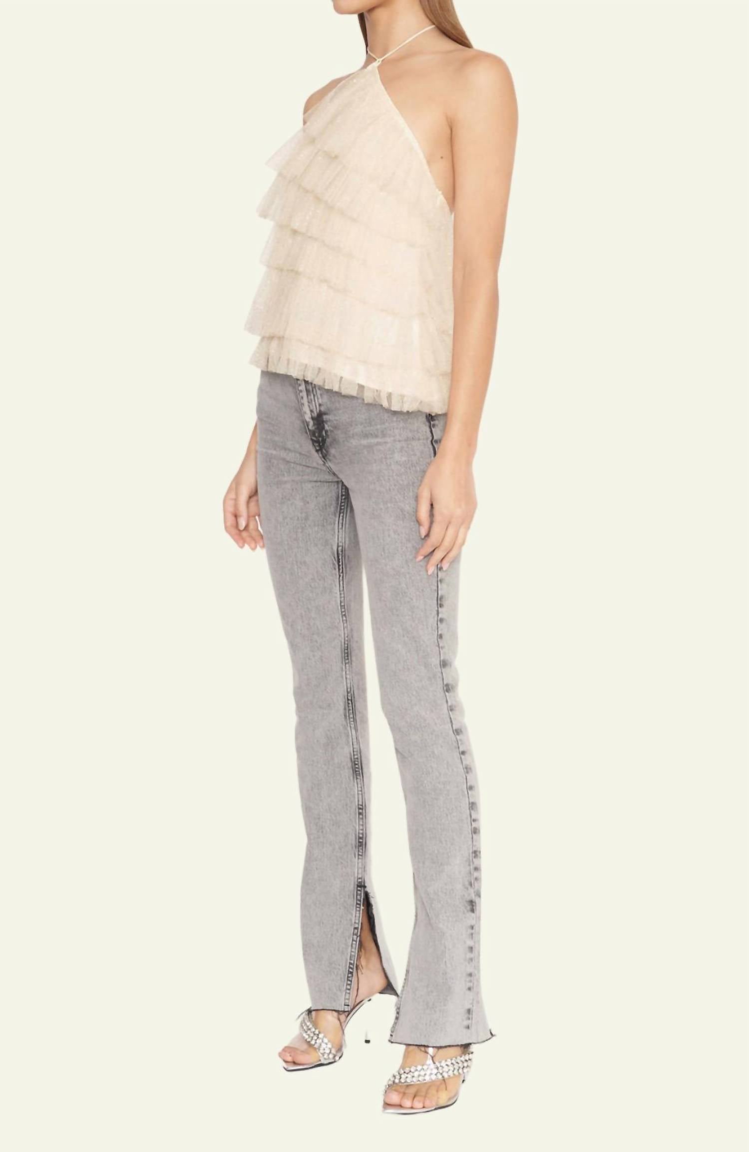 Pair this with your favorite jeans and slides for your next girls night out. Introducing the Bria Top in Pink by 4SI3NNA, a chic and versatile addition to your wardrobe. This sleeveless blouse features a stylish halter neckline and an asymmetrical tiered design, perfect for adding elegance to any ensemble. Crafted from high-quality polyester with a solid pattern, it offers both comfort and sophistication. Closure: Tie closure. Care: Hand wash and line dry.