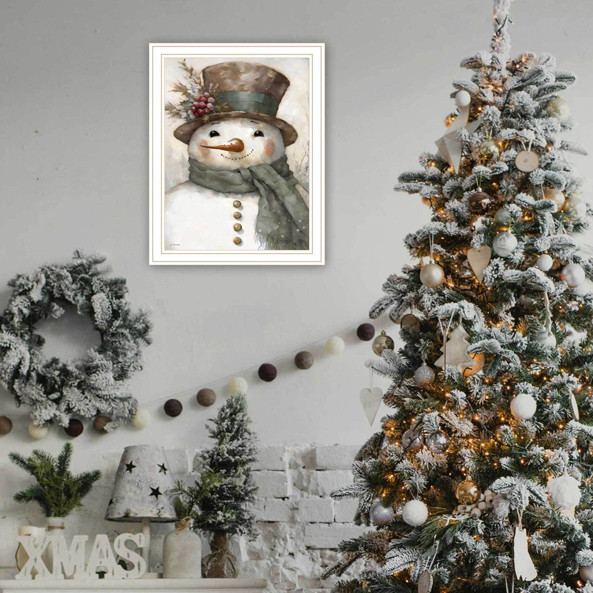 Trendy Decor 4U Old World Frosty The Snowman White Framed Wall Art by Jo Moulton
