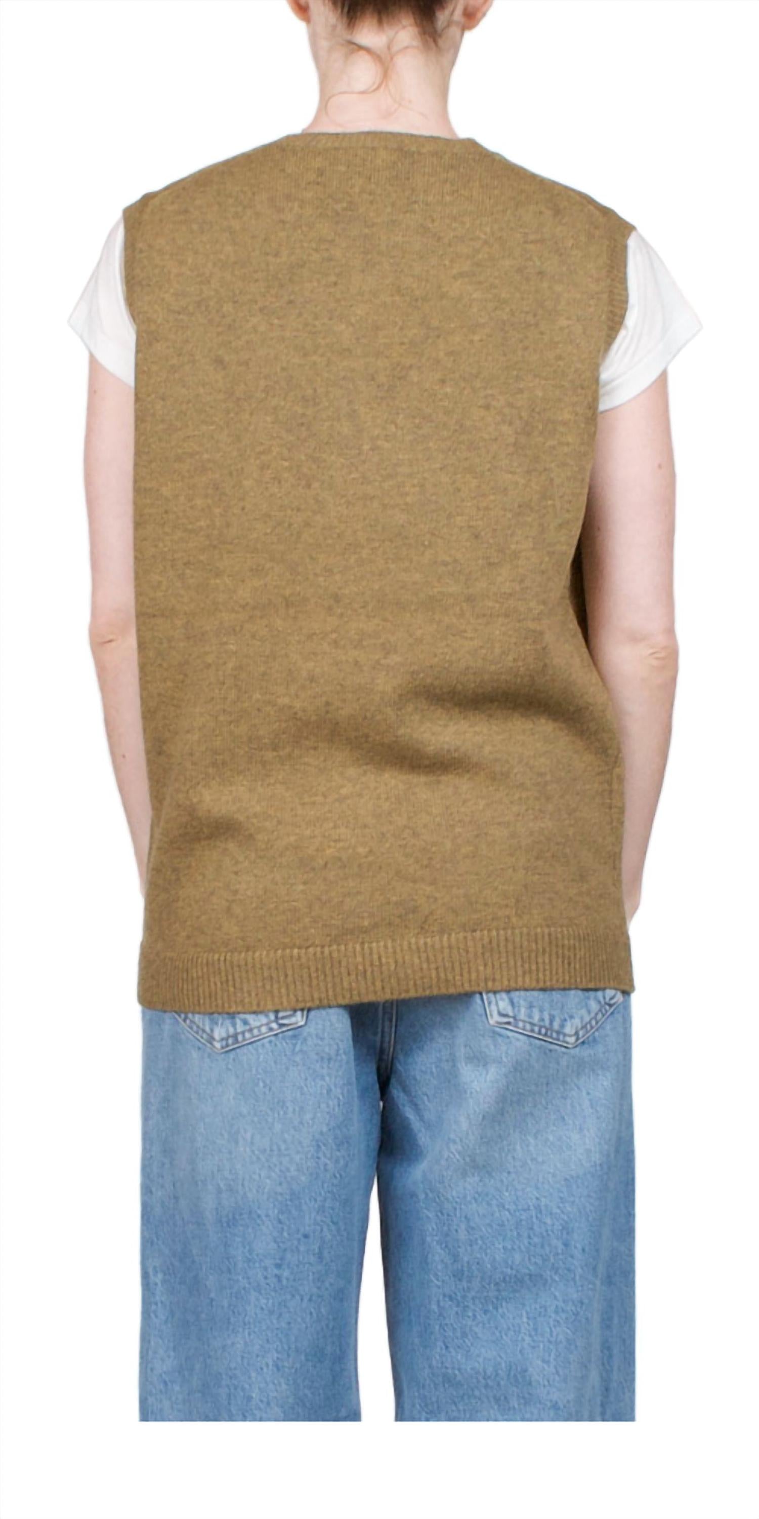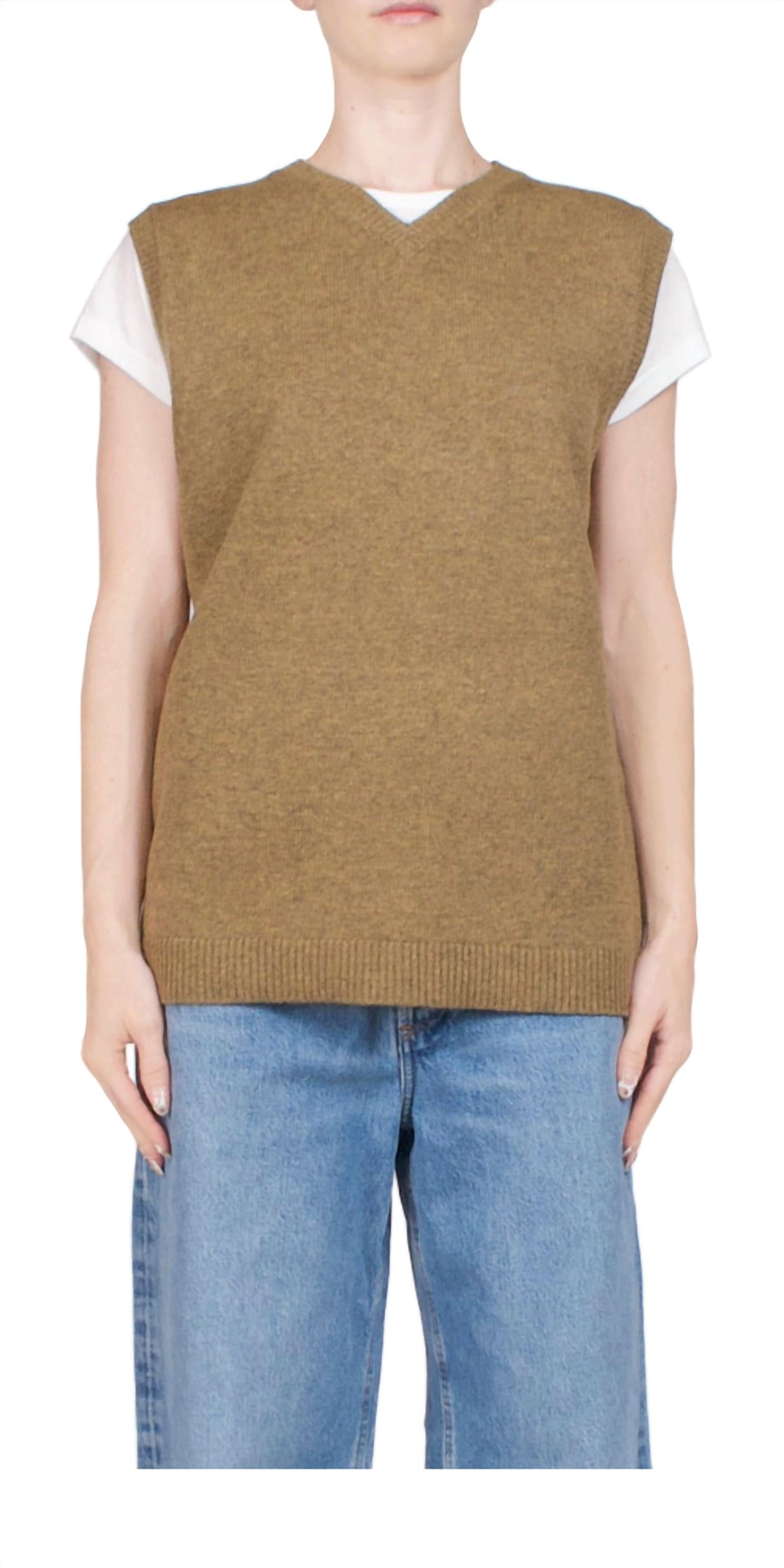Throw this vest over an all black outfit for a perfectly polished look. The Milano Vest Hunter by 6397 is a sophisticated addition to any wardrobe, crafted from an 85% Merino Wool and 15% Cashmere blend. This sleeveless piece features an elongated fit and a high V-neck, enhanced by ribbed trim at the bottom hem, neck, and sleeve openings. It offers a pull-on closure and is designed for a relaxed silhouette, ideal for versatile styling options.
