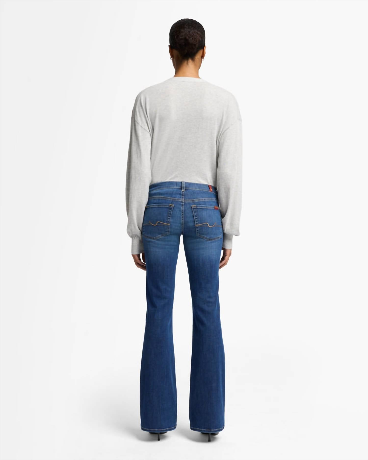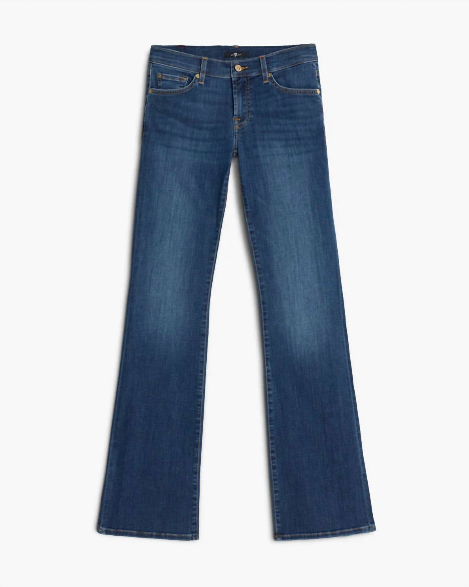 Just add boots! Discover the Original Bootcut Jeans by 7 For All Mankind, crafted for women who appreciate style and comfort. These mid-rise jeans feature a slim fit and full-length bootcut leg, enhanced by a dark Duchess wash with textured detail and subtle whiskering. With a composition of 69% Cotton, 14% Lyocell, 14% Polyester, and 3% Elastane, they promise breathable comfort and a good amount of stretch. Closure comes in the form of a secure button, and the jeans are best cared for with a cold machine wash inside out and laid flat to dry. They include signature back pocket embroidery and measure a 9.25" rise and 34" inseam. Imported.
