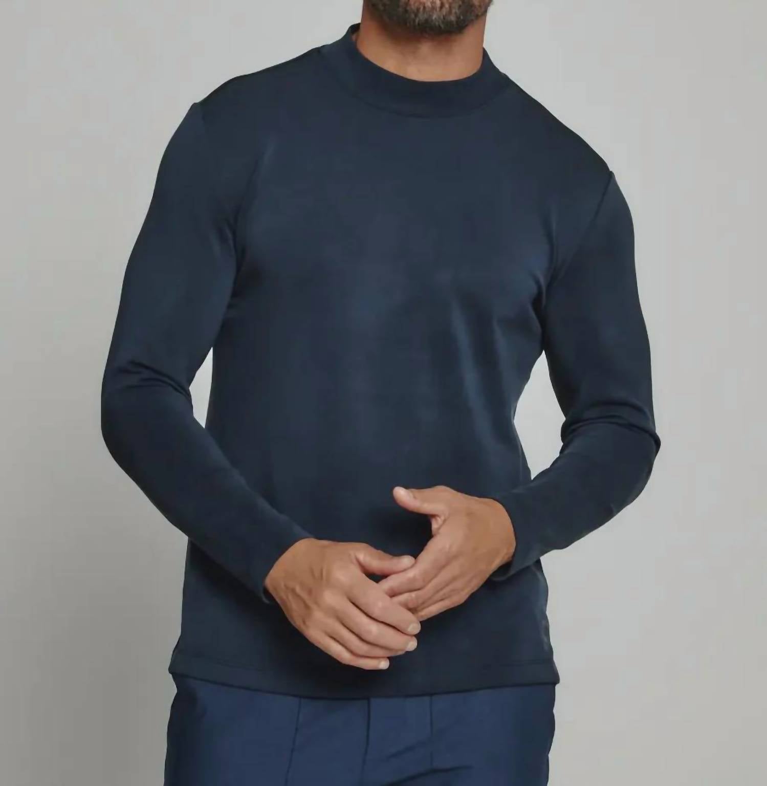 Introducing the Rev Mockneck Top by 7Diamonds, a versatile navy long sleeve tee perfect for any occasion. Crafted from a blend of 49% Polyester, 41% Modal, and 10% Spandex, it offers an impossibly soft feel with optimal stretch and recovery. Featuring a contemporary silhouette and a mock neck design, this pull-on top is ideal as a mid-layer or worn solo. Care instructions recommend machine wash cold on a delicate cycle, dry flat, and warm iron on reverse; do not tumble dry or dry clean. Model is 6'1" and wears a size medium.