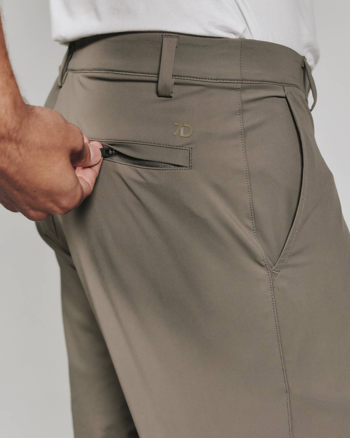 Elevate your summer wardrobe with the Zuma Short by 7Diamonds in Desert Sage, crafted for modern sophistication. This men's short features a sleek flat front design and an 8" inseam, offering comfort with its elastic waistband and handy pockets. Made from a premium blend of 75% Nylon and 25% Spandex, ensuring four-way stretch and durability. Closure: Button closure. Care: Machine wash cold with similar colors on delicate cycle, tumble dry low, do not bleach, iron on low if needed, do not dry clean. Model is 6'1" and wears a size medium.