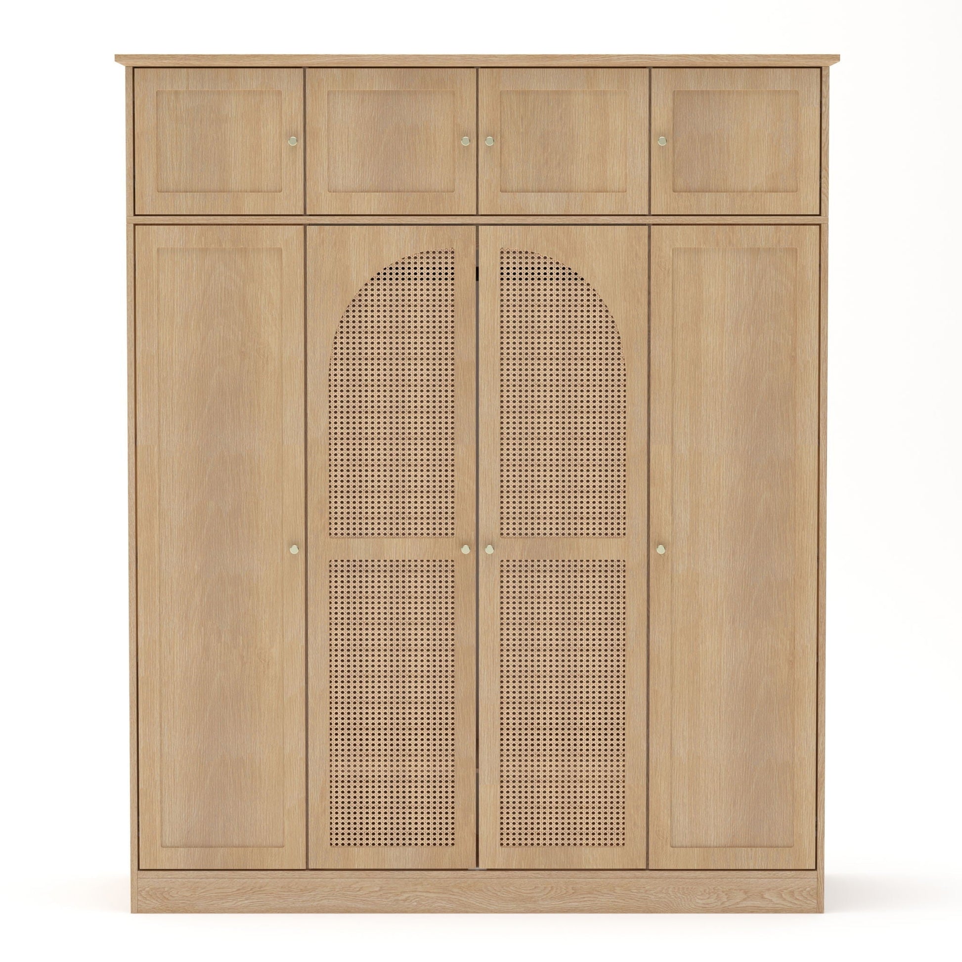This 8 door armoire wardrobe is designed to provide versatile and spacious storage for bedrooms or other living areas. Featuring adjustable shelves and a hanging rod, it combines functionality with a natural rattan accent for a stylish look.