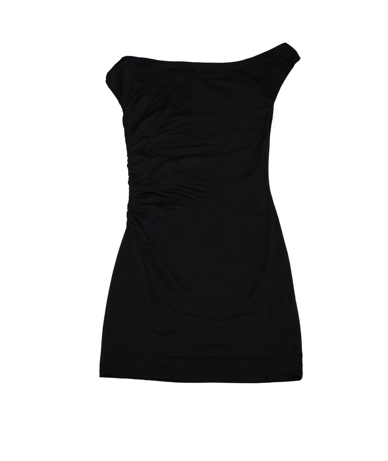 The kind of easy and flattering dress you'll be reaching for all season long. Introducing the Lyric Little Black Dress by 8apart, a timeless wardrobe staple for any stylish woman. This mini dress features short sleeves and an off-the-shoulder neckline, crafted from a soft nylon blend in a solid black color. Designed for ease, it offers a pull-on closure for effortless dressing. Care is simple with machine wash instructions, perfect for maintaining a minimalist and chic look.
