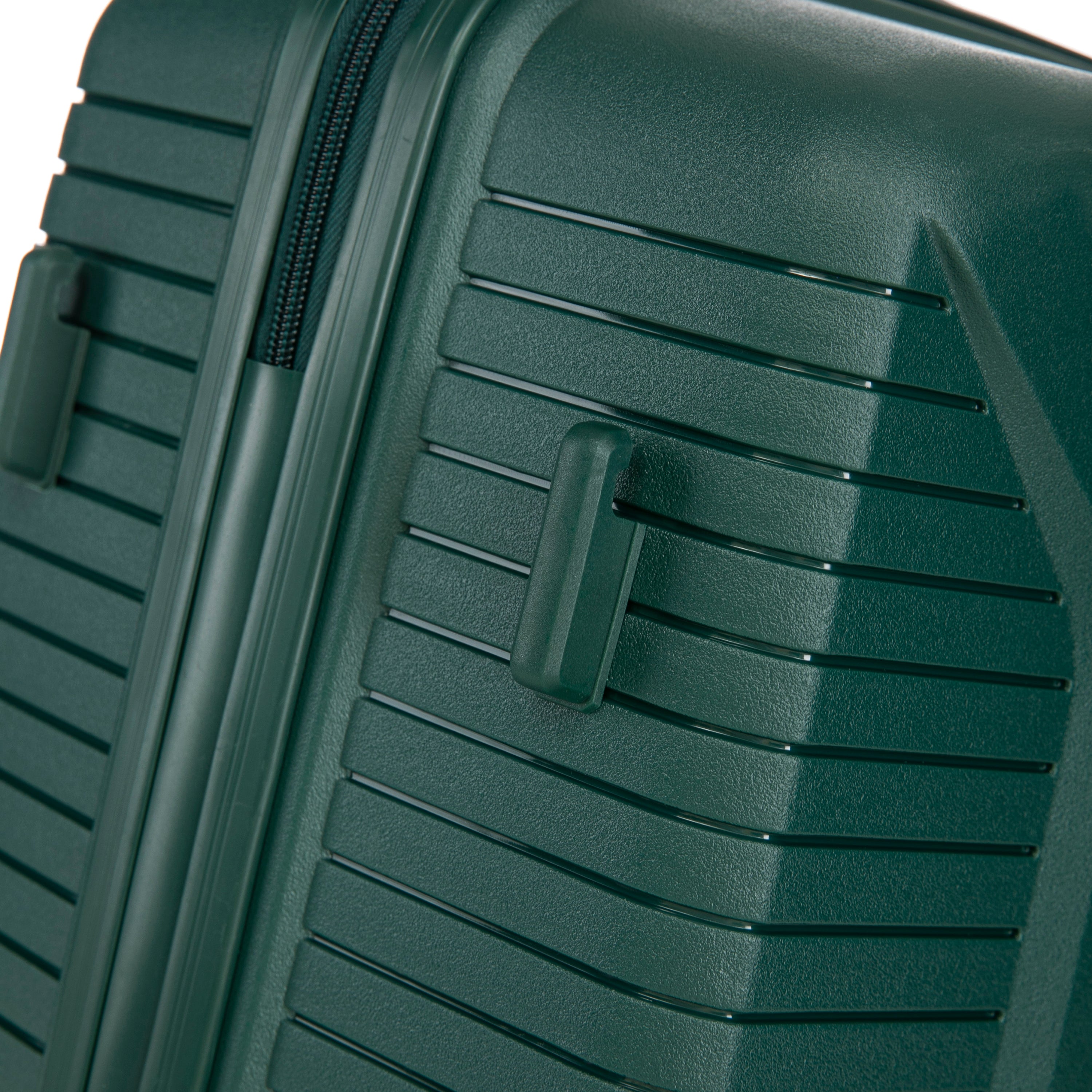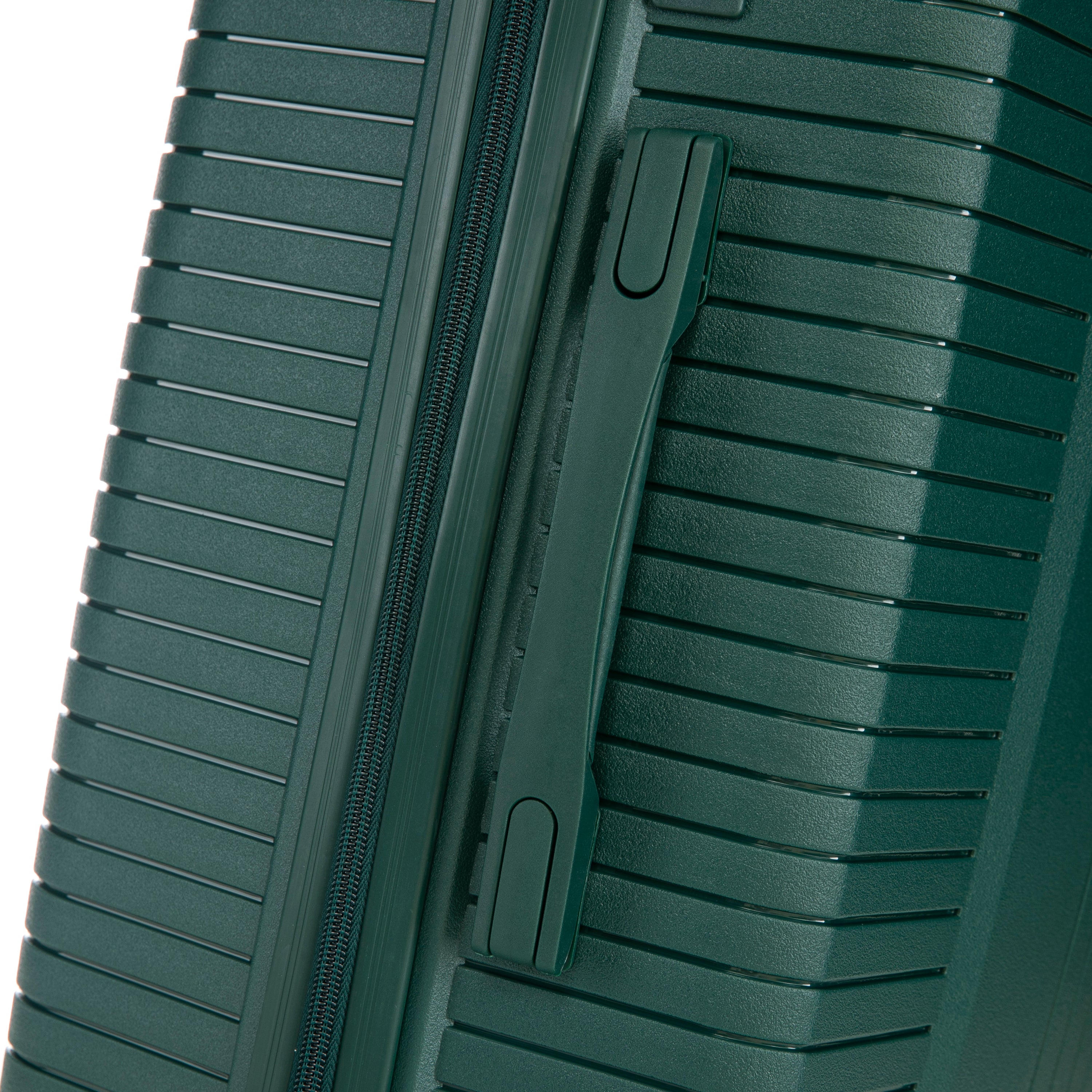 The elegant vertical stripe design adds style while increasing resistance to scratches and pressure. Each suitcase includes four molded side feet, allowing it to stand upright and stable, even when laid on its side.