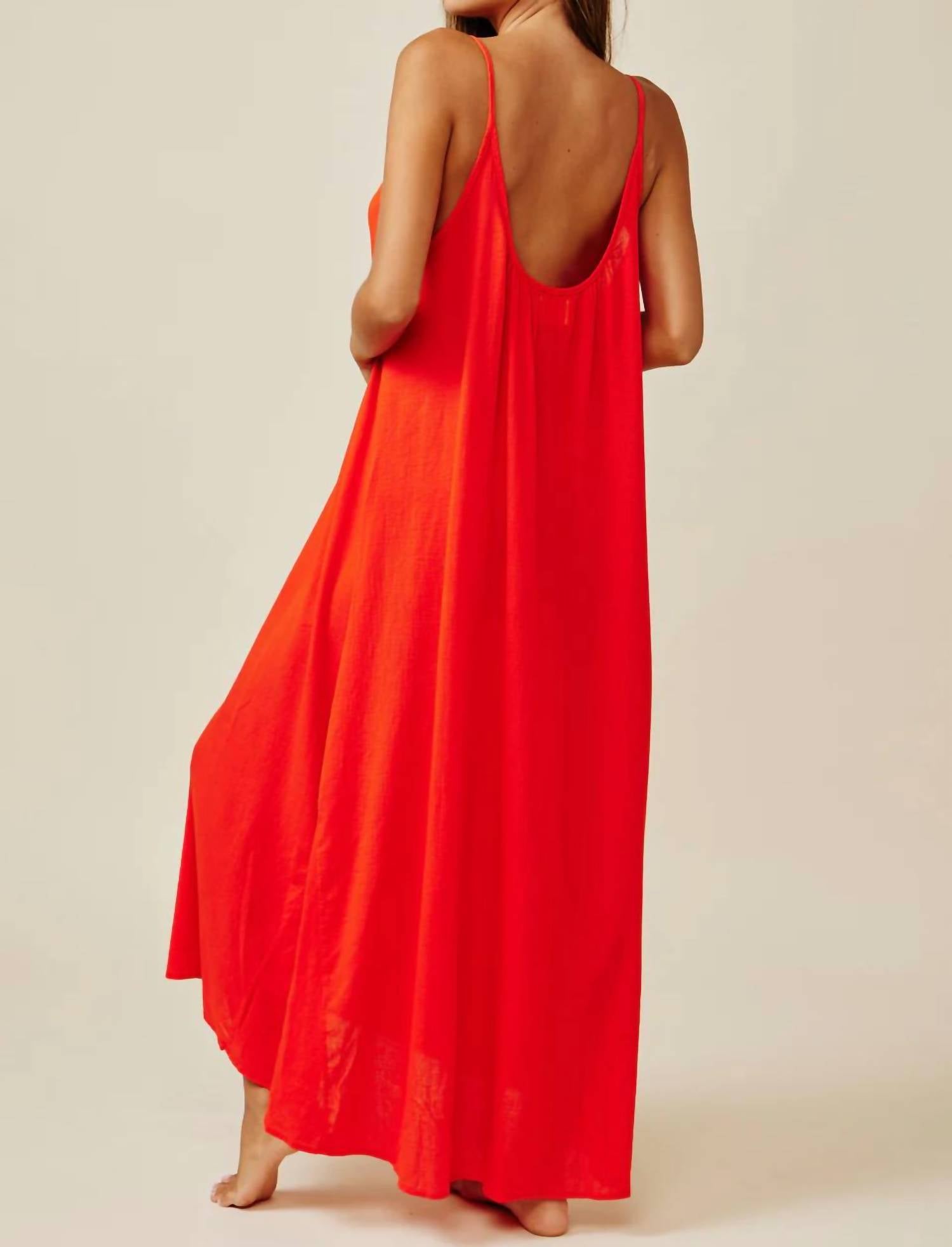 Who doesn't love a good maxi dress? This one you'll be reaching for season after season. Elevate your summer wardrobe with the Tulum Low Back Maxi Dress by 9seed, in a vibrant dahlia shade. This gauzy, semi-sheer cover-up features spaghetti straps and a flattering scoop neckline. Made in the USA, the dress is crafted from 100% cotton, with a graceful length ranging from 48 inches in the front to 51.25 inches at the back. This shift silhouette dress is crafted for comfort with a pull-on closure and requires hand washing and laying flat to dry for care.