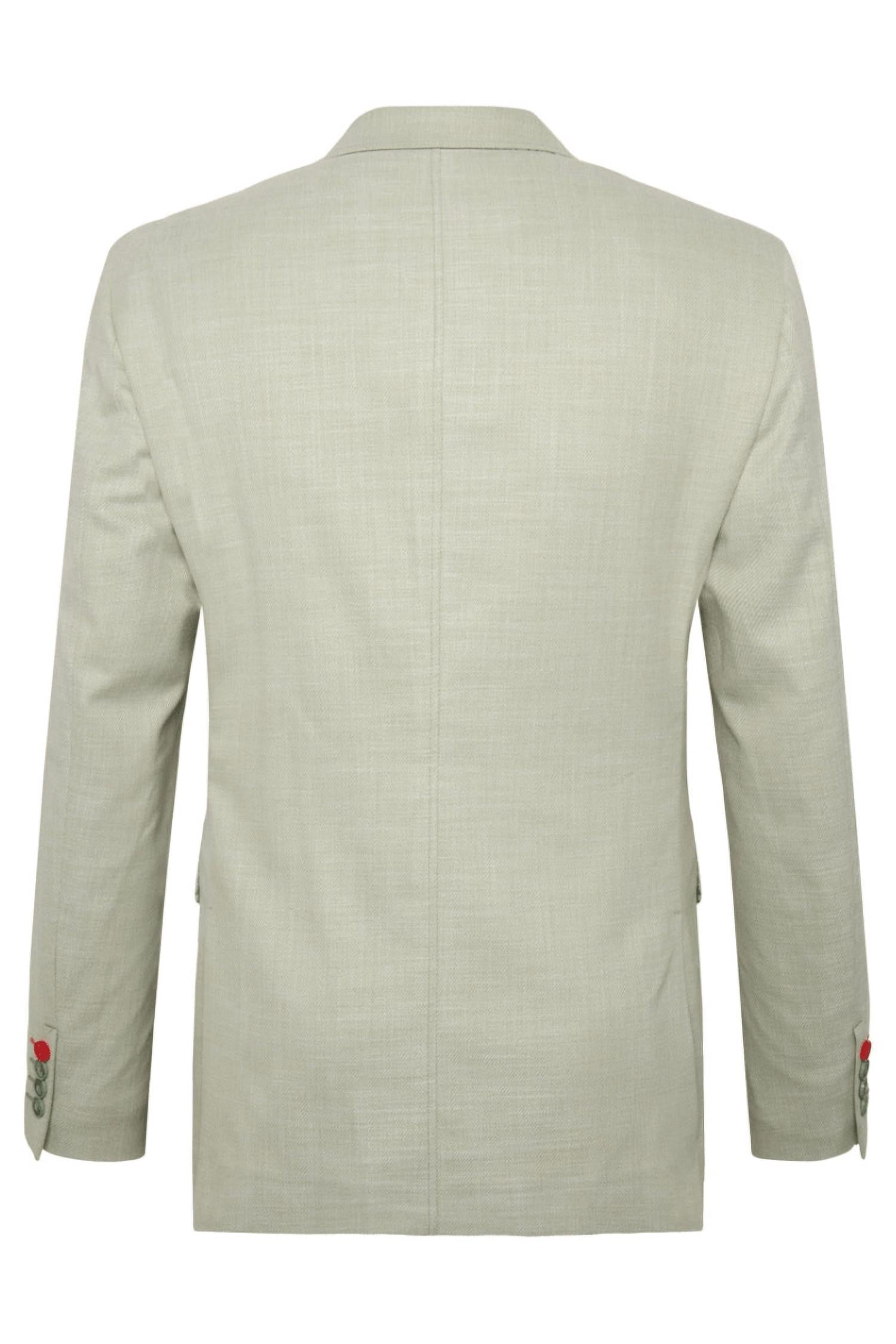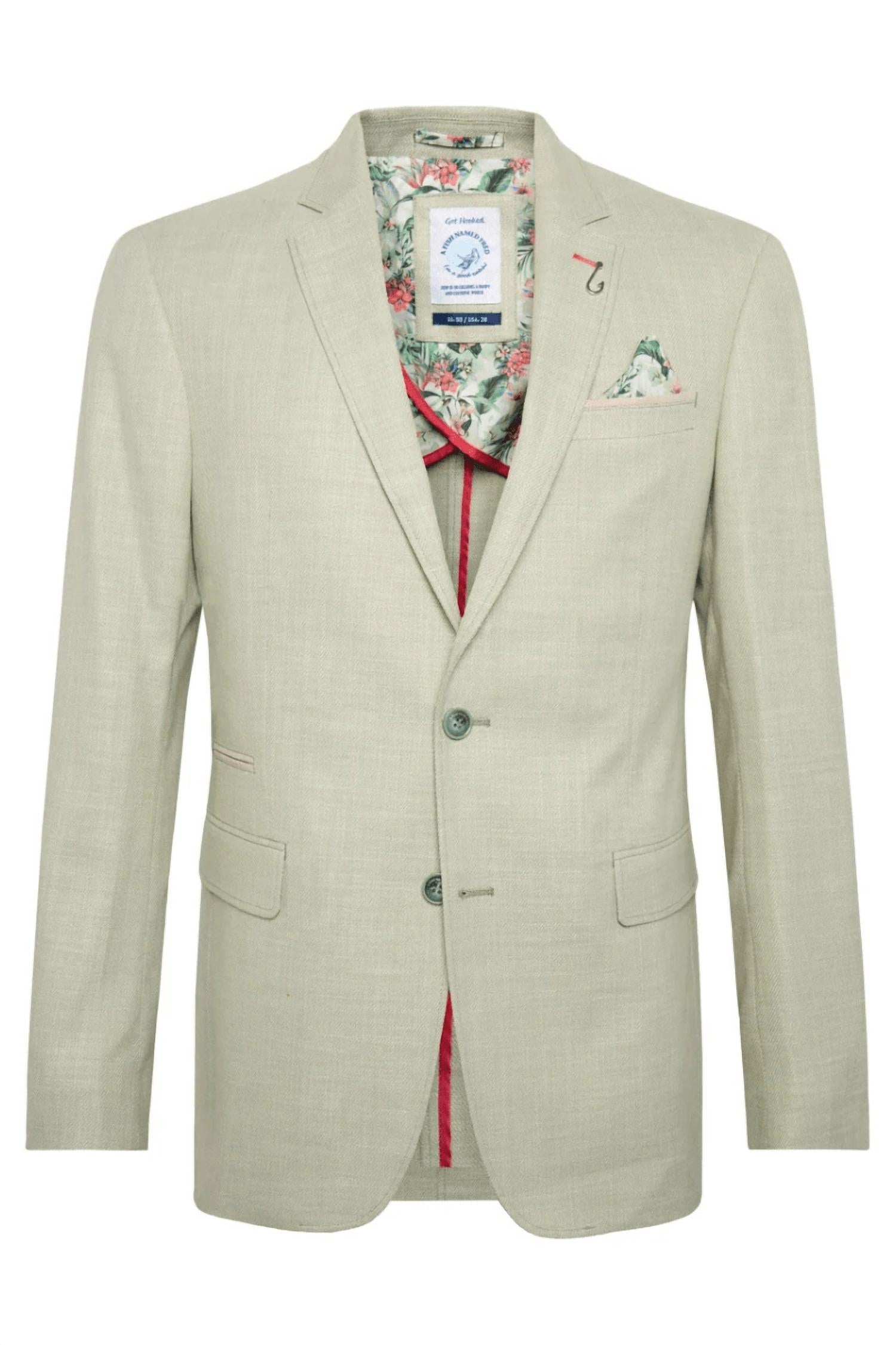 Elevate your wardrobe with the Men's Structured Blazer by A Fish Named Fred, an eye-catching piece in light green. This solid blazer features long sleeves and a button closure, complete with a printed lining and functional pockets. Composition: 66% Polyester, 32% Rayon, 2% Spandex. Care: Machine wash and tumble dry for easy maintenance. Embrace the concept of quiet luxury this spring, whether dressing for New Year's Eve or an engagement.