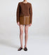 Elevate your fall wardrobe with the Cowan Mini Skirt by A.L.C., a sophisticated piece in brown lamb leather featuring a solid monochrome design. Measuring 13 inches in length, this lined mini skirt ensures a flattering fit with a zip closure. Crafted from 100% lamb leather with a polyester lining, it offers both luxury and durability. Care for your investment with professional leather cleaning.