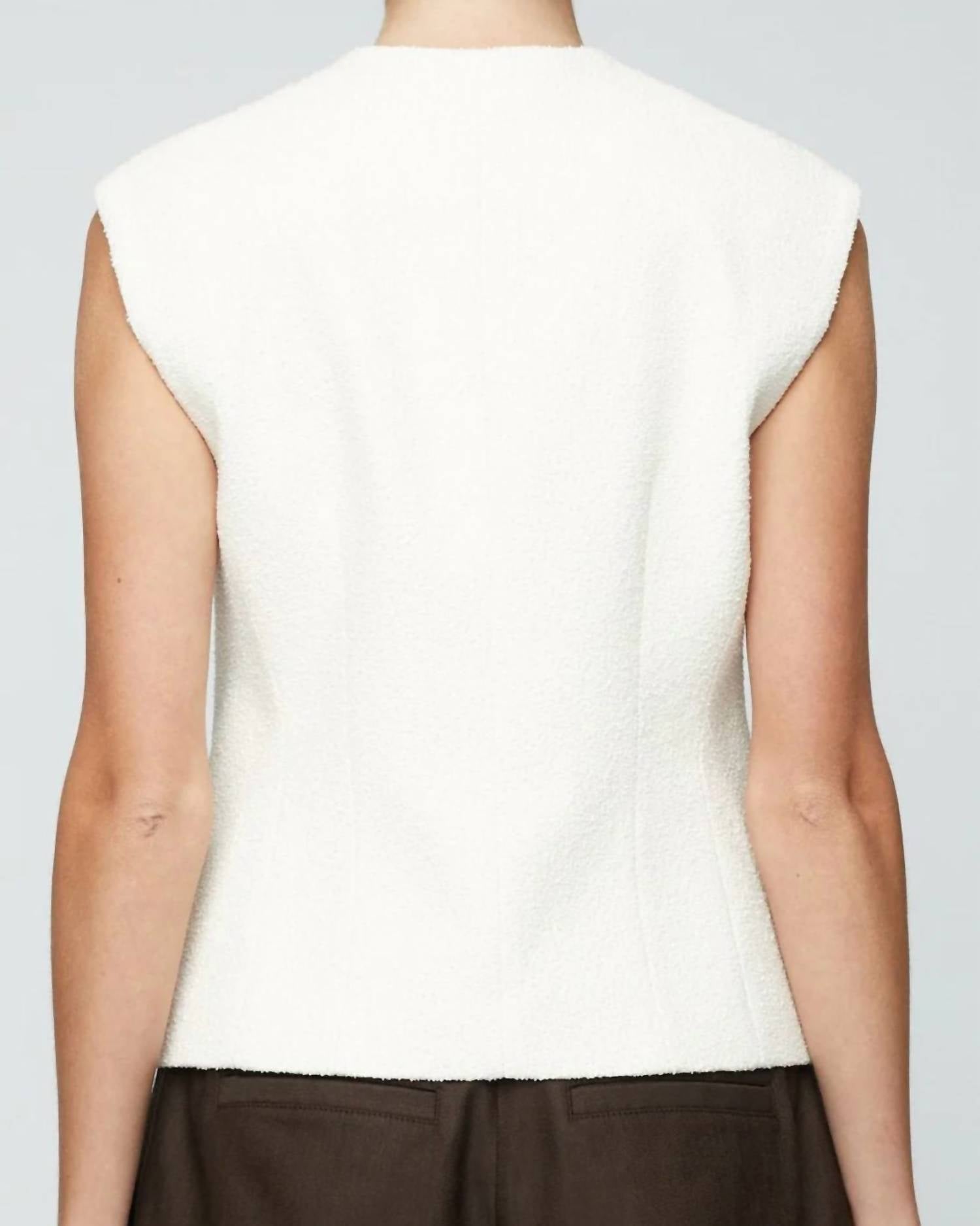 A vest so versatile you can mix and match it with almost any outfit and it will feel brand new every time. The Georgie Button-down Vest by A.L.C. is a pearl-colored staple for any minimalist summer wardrobe. Crafted from a 93% cotton and 7% polyamide blend, this sleeveless vest offers a solid pattern that's perfect for vacation. Designed with a crewneck and practical pockets, it closes with buttons for easy wear. For maintenance, dry clean only.
