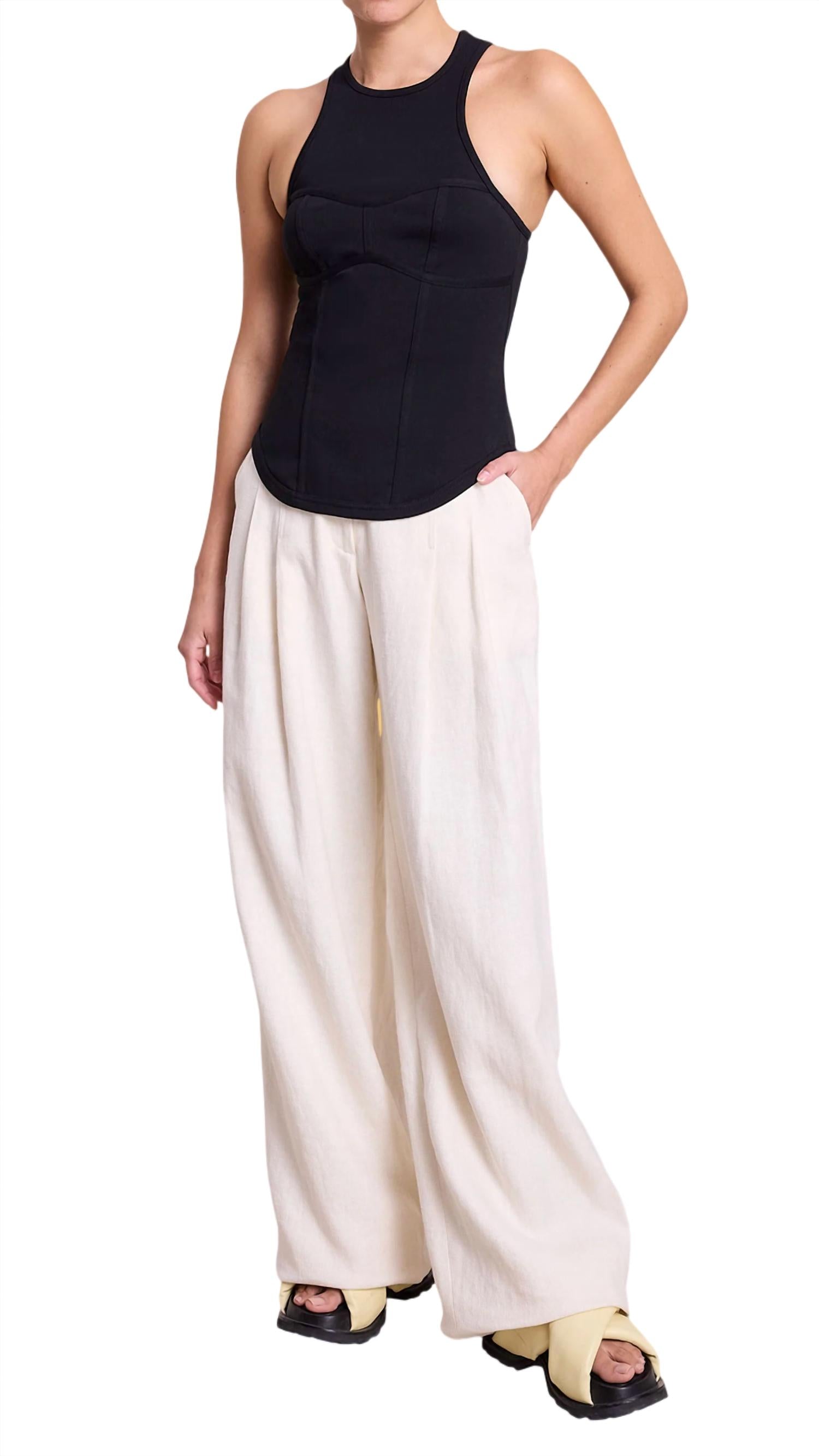 The perfect tank top for those warmer weather seasons. 100% cotton. Watson Cotton Jersey Tank. Structured cotton jersey fabric. Bustier-inspired seams. High round neckline. Racerback silhouette. Machine wash. Imported