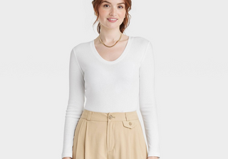 A New Day White Long Sleeve V-Neck Women's T-Shirt Size M